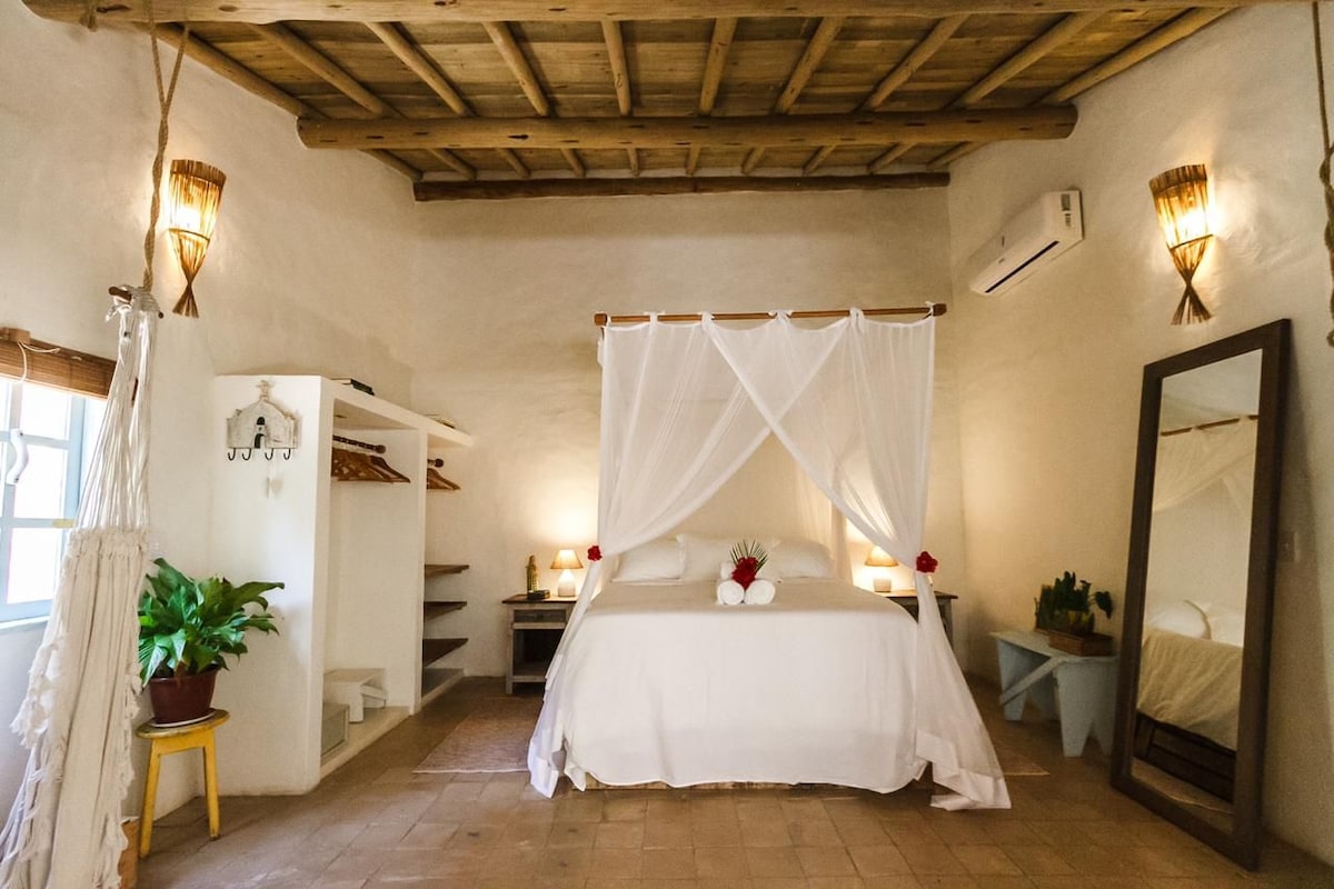 Desenhado em forma de hexágono, o Bangalô Arraia alinha a rusticidade de uma vila de pescadores com luxo. Com o acabamento em Taipa, barro, remetendo às construções oriundas do vilarejo mais antigo do Brasil, o local busca desacelerar e abraçar os seus hóspedes, fazendo com que você sinta a paz e leveza que a vila tem. A acomodação fica em nossa pousada, que conta com um quintal arborizado e uma equipe pronta para atender as suas necessidades.