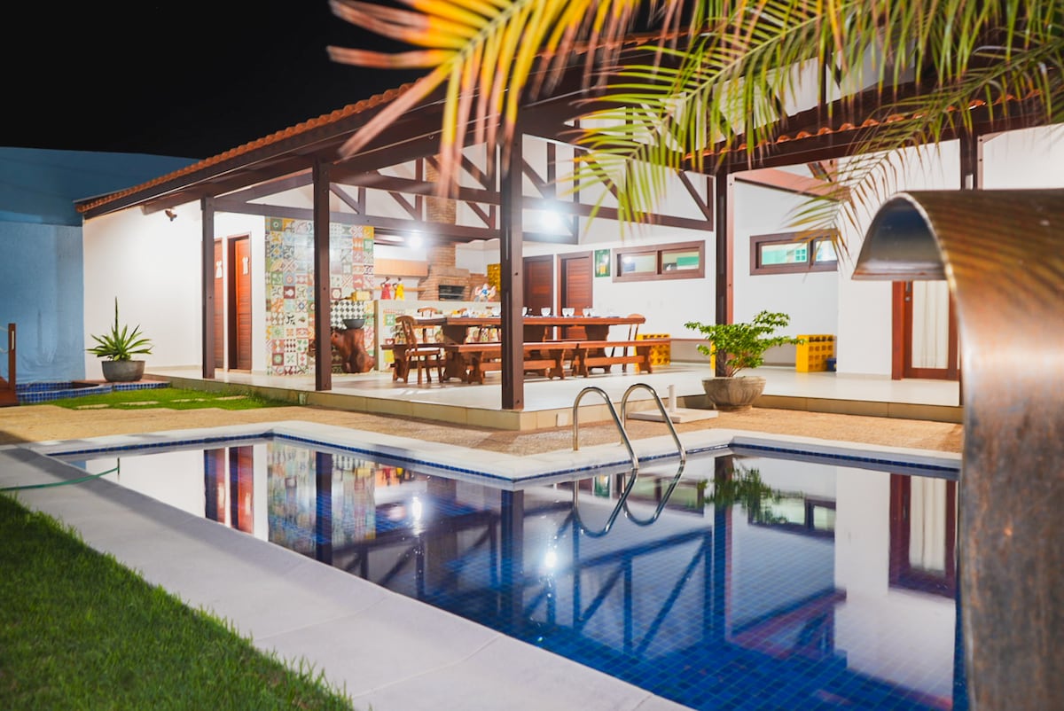 Relaxe, curta e aproveite ao máximo nessa casa super espaçosa em Lagoa do Pau, Coruripe! Aqui, o conforto vem em dobro: são 2 suítes + 2 quartos, 2 cozinhas equipadas (ideal pra quem adora cozinhar ou reunir a galera em volta da comida!), e uma piscina maravilhosa pra se refrescar e se divertir o dia todo. A casa acomoda até 12 pessoas tranquilamente, tem ar-condicionado em uma das suítes e ainda oferece garagem para até 3 carros — espaço é o que não falta!