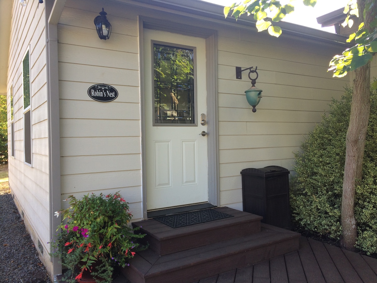 Enjoy the peace of a rural setting while still being just minutes away from restaurants & shops in downtown Salem, the Riverwalk and Willamette University. Take a day trip to the coast or relax & enjoy a bottle of wine on either of the 2 decks, or unwind by the cozy fireplace in the comfortable 2nd story guest suite with a private entrance. Our residence is located in a beautiful wooded area of south Salem with easy access to Interstate 5.