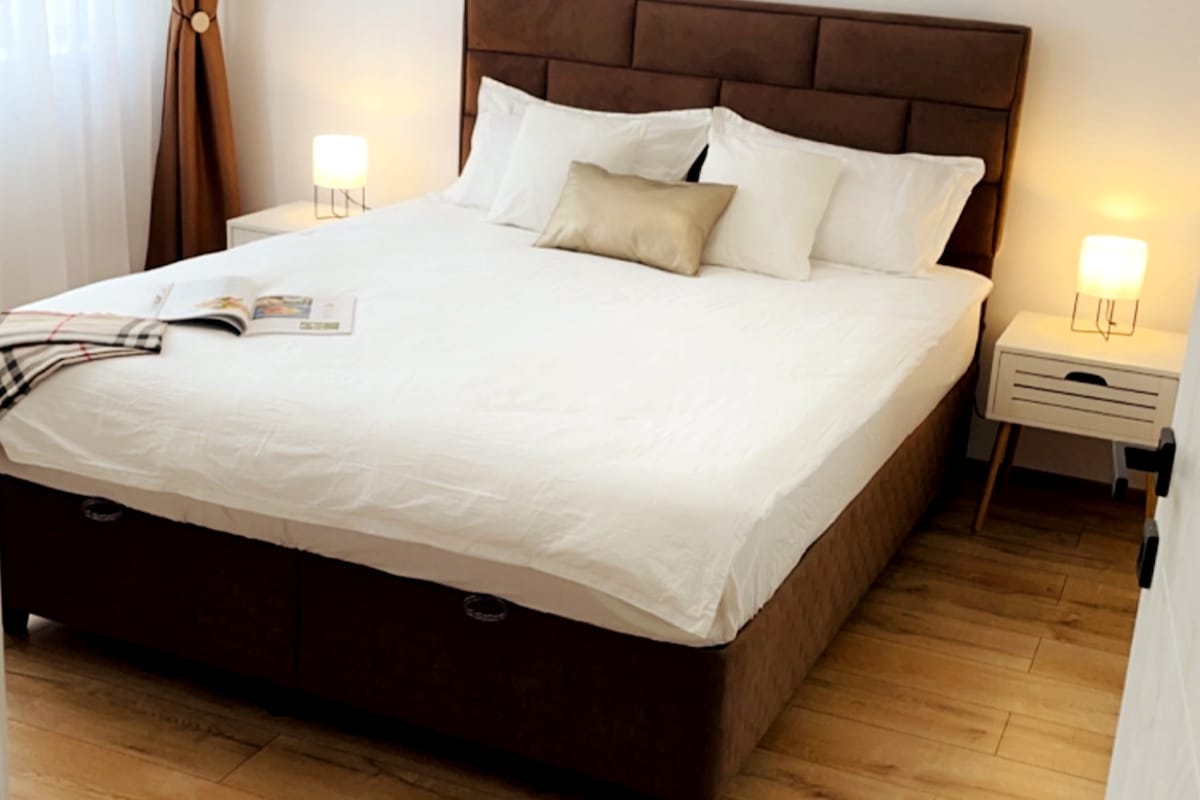 TAD HOUSE (cazare in regim hotelier) este amplasat la 200 m de centrul orașului. Detalii : - 1 camera: pat matrimonial, TV cu canale prin cablu și acces gratuit la Netflix (la solicitarea clientului se poate pune pătuț pentru copii) - Baie: dus, prosoape, produse îngrijire corporală - Bucătărie: cuptor electric, plita vitroceramica, cuptor cu microunde, espressor Tschibo, frigider, tacâmuri, vesela. - Acces gratuit la internet WiFi - Mini bar