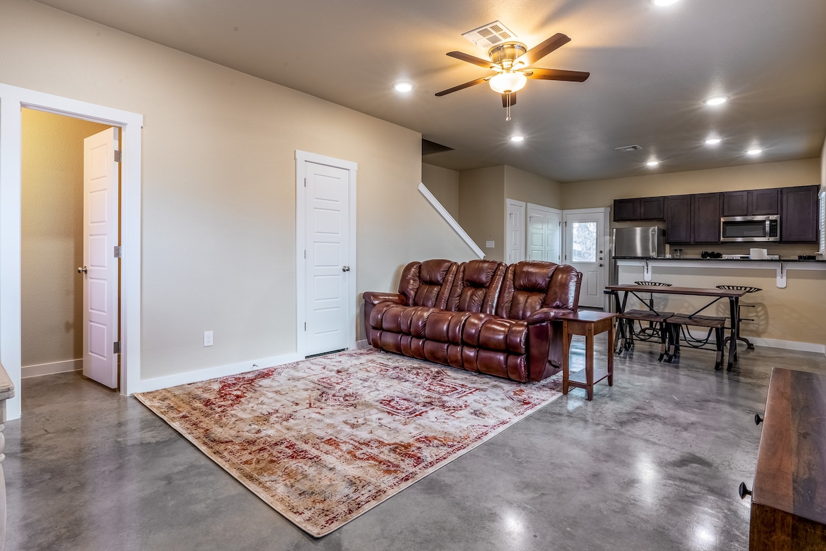 This Barndo provides a safe and Cozy home away from home. The space is private and has covered parking and a nice covered seating and grilling area. There is a nice large shade tree and grass area (not fenced)for kids and pets to play. The barndo is located next to a safe neighborhood if you like to walk. The convenient location has easy access to Highway 36 and is close to North Fort Hood. Walmart is minutes down the road.