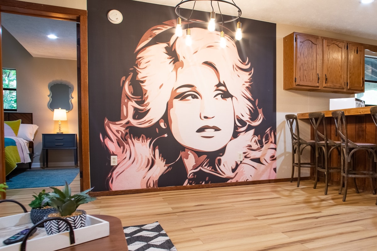 A colorful getaway honoring our local and global icon, Dolly! We offer a unique space with comfortable accommodation while having access to attractions in Gatlinburg and Pigeon Forge. Dolly grew up around these parts and you can also fame it up while on vacation! Perfect for 4 people traveling together with the ability to WFH on exclusive, unshared Comcast Xfinity wifi internet. We have several units available on this street all sleeping up to 4 people. Click our profile to see the rest!