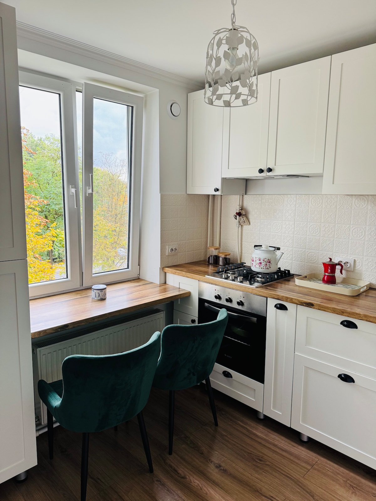 This freshly renovated apartment was designed with love as a personal inspiring space, and you’ll be the first guests to enjoy its charm and light. The apartment is filled with light and quiet, just a 10-15 min from the city center. Whether you're in town to explore or unwind, this place invites you to slow down and feel at home. Everything you need for comfort is here, from the inviting atmosphere to an open balcony – perfect for morning coffee or view on the legendary retro hotel Cosmos.