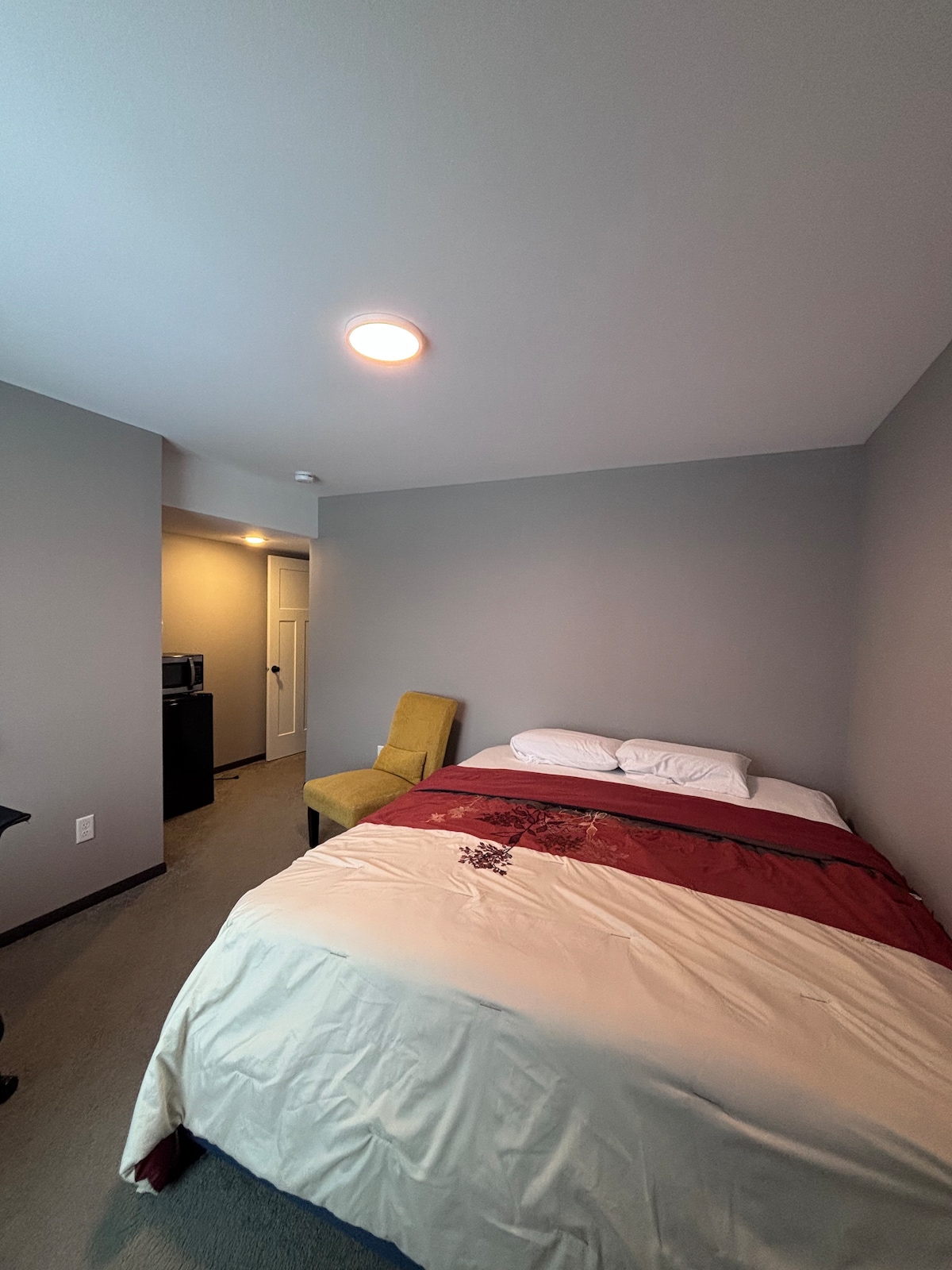 Relax and recharge in a spacious private lower level suite. Independent guest entrance to 1000 sqft of private space in a quiet and walkable neighborhood. Free parking on premises. Perfect for resting after a long drive (3.5 miles from I-80), visiting family on campus (2.4 miles), traveling professionals at hospitals (2.6 miles), or sports fans wanting a quiet retreat after leaving Kinnick stadium (3 miles) or Coralville Xtream Arena (6 miles). Less than a mile away from shops and restaurants.