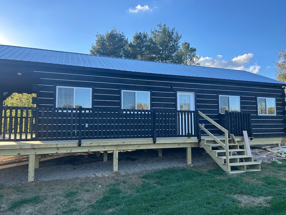 Our hi-end cabin offers a beautiful country setting on 4 acres and comes equipped with luxurious bedroom suites! Soak in the hot tub and enjoy the peaceful view from the log cabin deck or sip a fresh cup of coffee on the hickory rocking chairs on the front porch. Our family-friendly space comfortably sleeps 11 guests, and larger groups are welcome! The large lawn is perfect for games, tent camping, and quality time around the campfire. Come experience our cozy space, make your reservation today!
