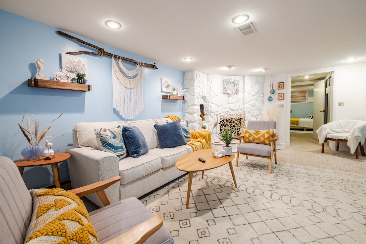 The space is a dedicated basement apartment. The space has its own door and lock, but guests will enter through a shared garage entrance. The decor is neat and modern. There is a small kitchenette, giving guests the ability to eat in, or make coffee. The cozy sitting area is a great place to wind down for the evening or enjoy a morning cup of coffee. The apartment is below our living space. While we will do our best to keep noise to a minimum, you will hear kids/footsteps during the day.