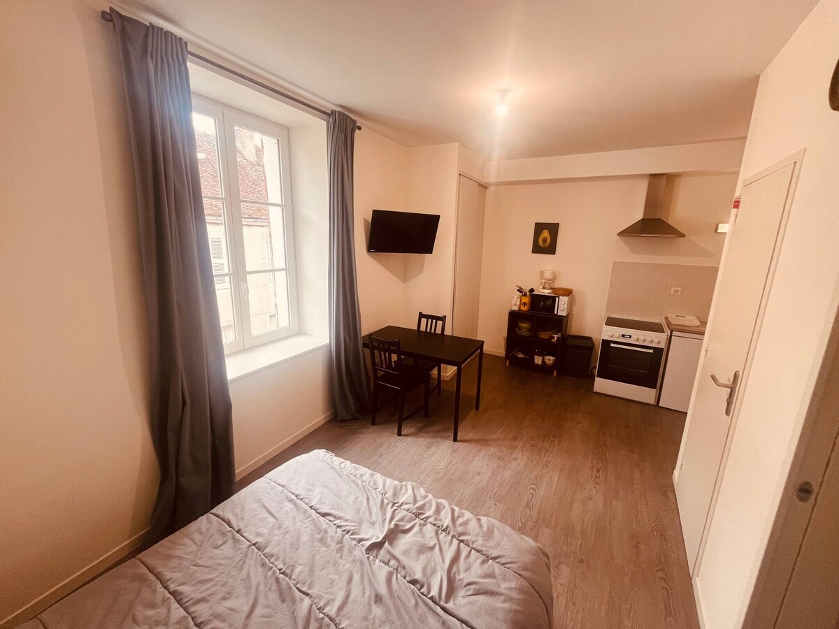 Profité un logement élégant, situé en centre ville de Gien. - Studio 20m2 entièrement rénové: - Disposant d'un séjour, Télévision, Table base escamotable ,Table pour manger ou bureau, avec un petit canapé 2 places. - Un coin nuit avec un lit double de 140 x 190 d'une penderie. - Une salle de bain - Cuisine entièrement équipé Plaque gaz deux feux, four, micro onde, hotte, frigo cafetière ,bouilloire..) avec vue sur la Loire - Parking gratuit dans la rue - wifi fibre