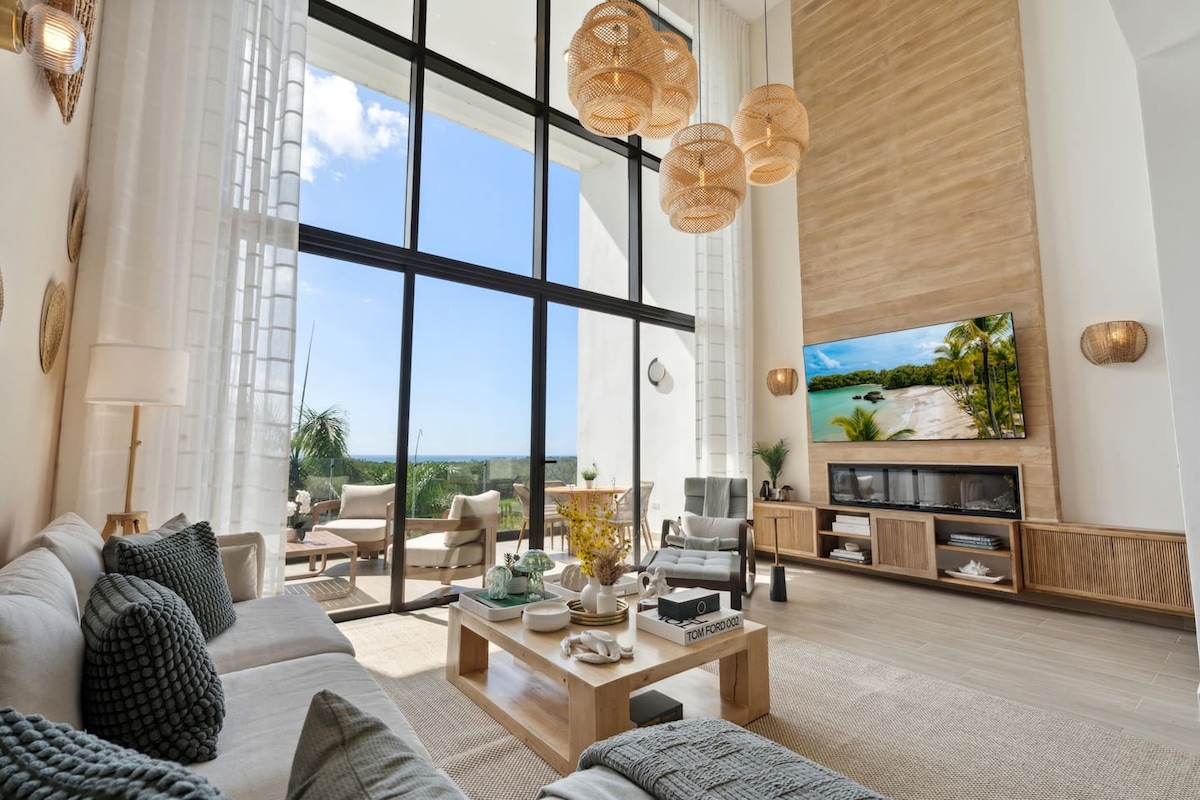 Elevated beachfront oasis—2-story penthouse in a gated resort just steps from the beach. Family-friendly with pools, restaurant, gym & 24/7 security. Enjoy FREE cleanings, parking, & 250 Mbps WiFi. 3 BR / 4 Beds / 3 Baths: Upstairs – 1 King BR, 1 bath, mini kitchen, living room, oceanview terrace. Downstairs – 1 King BR + 1 BR w/ 2 Queens, 2 baths, full kitchen, private washer/dryer, terrace. Chef available. No pets.