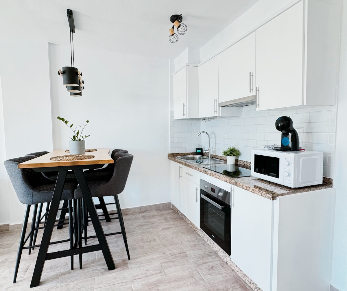Acogedor y totalmente equipada Olas Suite frente al mar, con acceso directo a la playa 10m, Ideal para los amantes del mar. Muy iluminado y con increíbles vistas. Zona muy tranquila y turística del sur de Tenerife. Alquiler de bicicletas, Excursiones, Supermercado, restaurantes, farmacia, panadería, Centro comercial Rosa Center, muy cerca.
