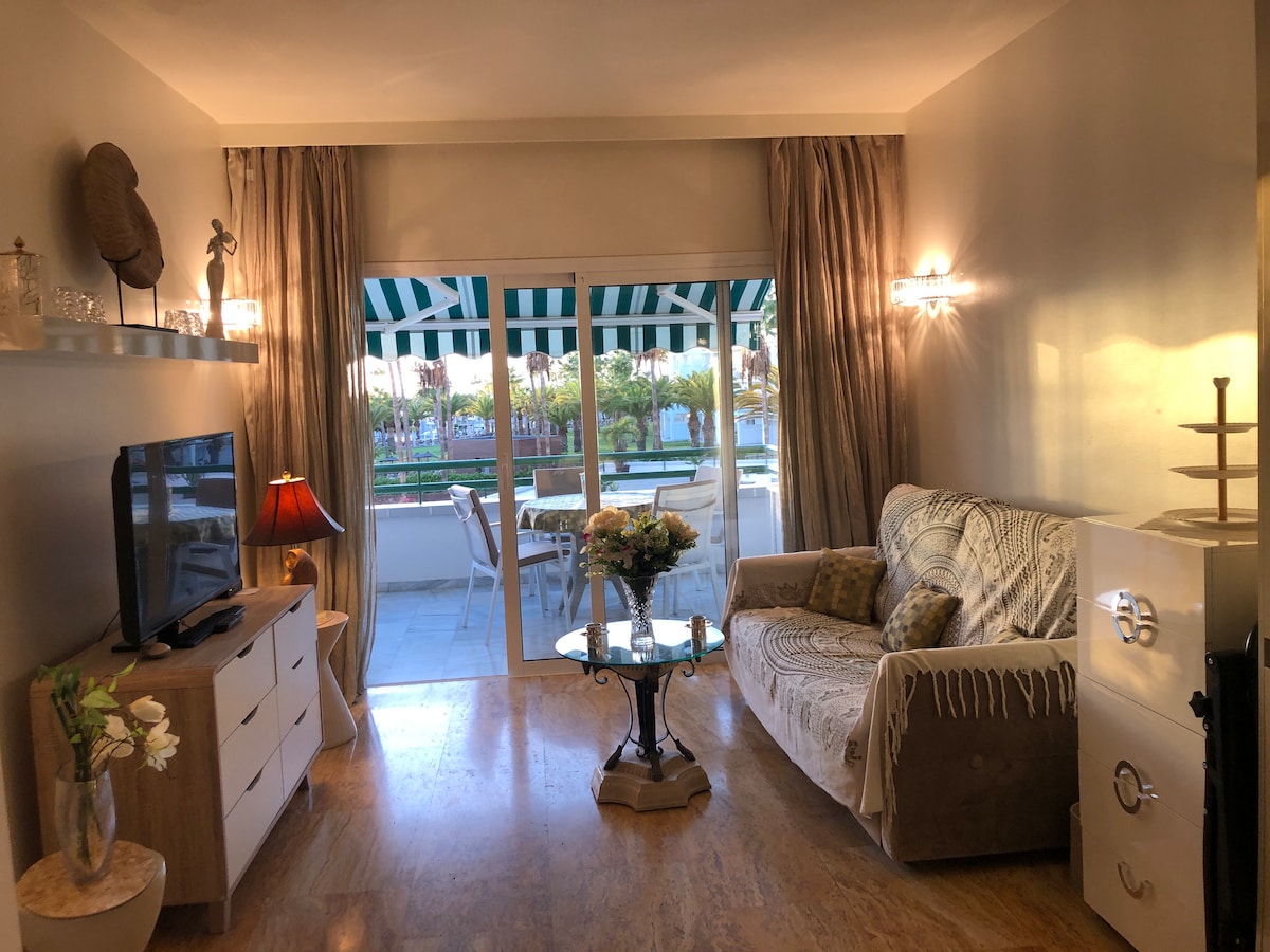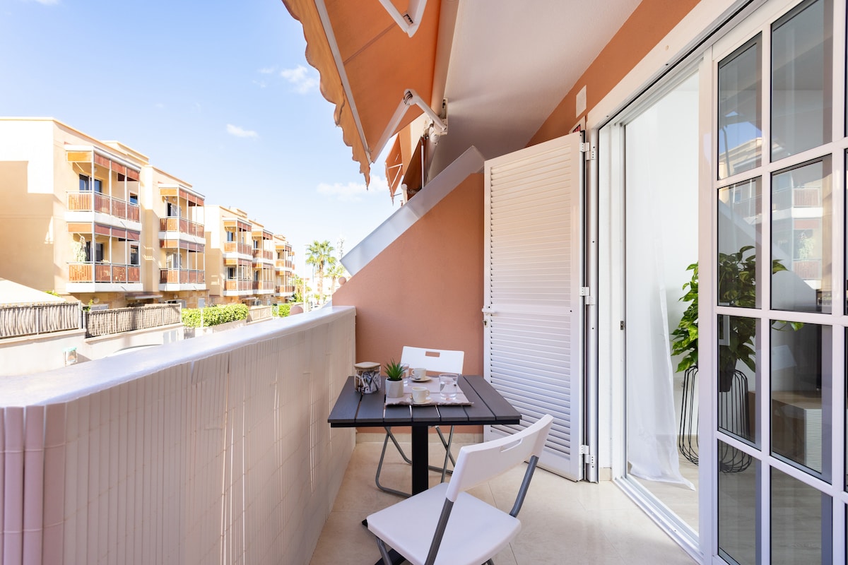Encantador apartamento recién reformado para hasta 4 personas. Cuenta con una habitación con cama de matrimonio y un sofá cama para 2 personas. Tiene todos los utensilios básicos para pasar una estancia cómoda y agradable. Está situado en una zona tranquila, donde encontrarás todos los servicios que necesitas a poca distancia. Supermercado, farmacia, restaurantes, taxi... En coche, estás a sólo 10 minutos de la playa El Duque y a 5 minutos del espectacular sendero del "Barranco del infierno".