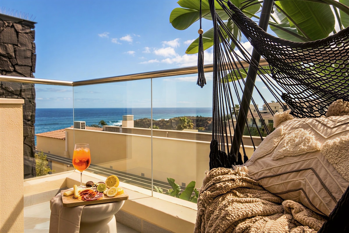 Imagina despertar con el sonido suave de las olas y disfrutar de tu café matutino en las terrazas que se asoman al mar. Nuestro moderno ático en Adeje es un rincón de paz y belleza, donde las vistas al océano y al majestuoso Teide te dejarán sin aliento. Las puestas de sol desde tu terraza son inolvidables. Además, estarás a pasos de la playa y rodeado de servicios y restaurantes. Sumérgete en la serenidad de Tenerife desde este paraíso junto al mar. ¡Bienvenidos a una estancia inolvidable!