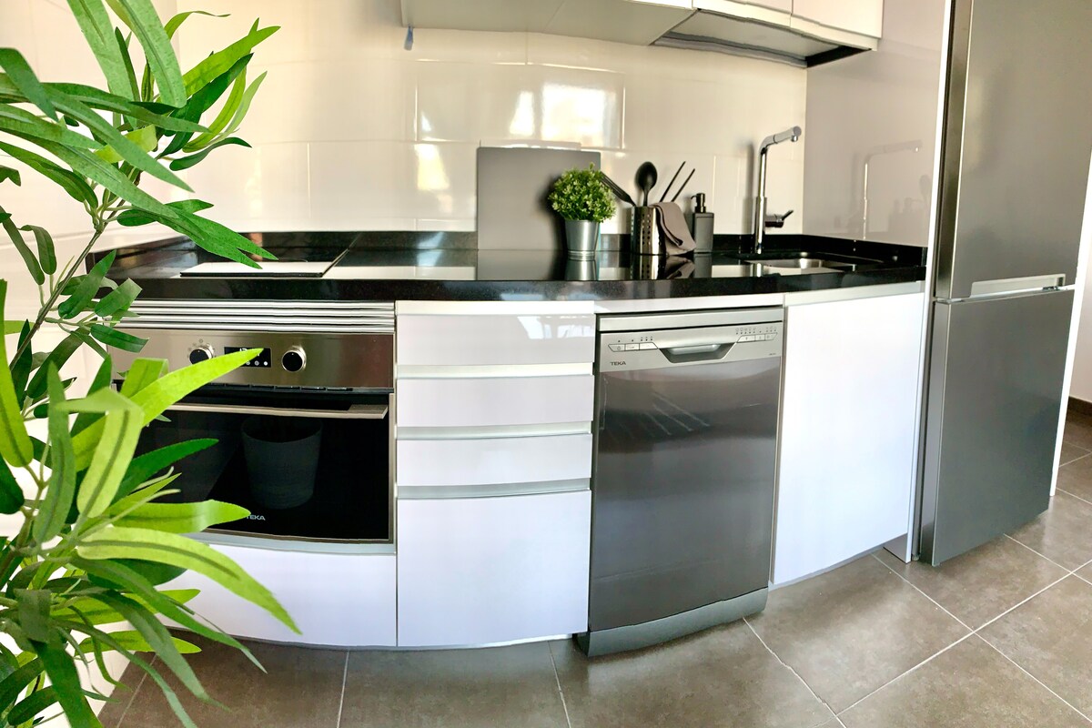 Precioso apartamento, moderno, confortable, luminoso y muy bien equipado . Con piscina comunitaria, Wifi, Smart TV. Muy cerca del centro comercial X Sur, y de los supermercados Mercadona e Hiperdino , a 1 km de los parques acuáticos y a menos de 1 km una de las playas más bonitas de la isla. Con parada de autobus en la Puerta. Puedes gozar del uso del aire acondicionado por un pago extra durante tu estadía!!