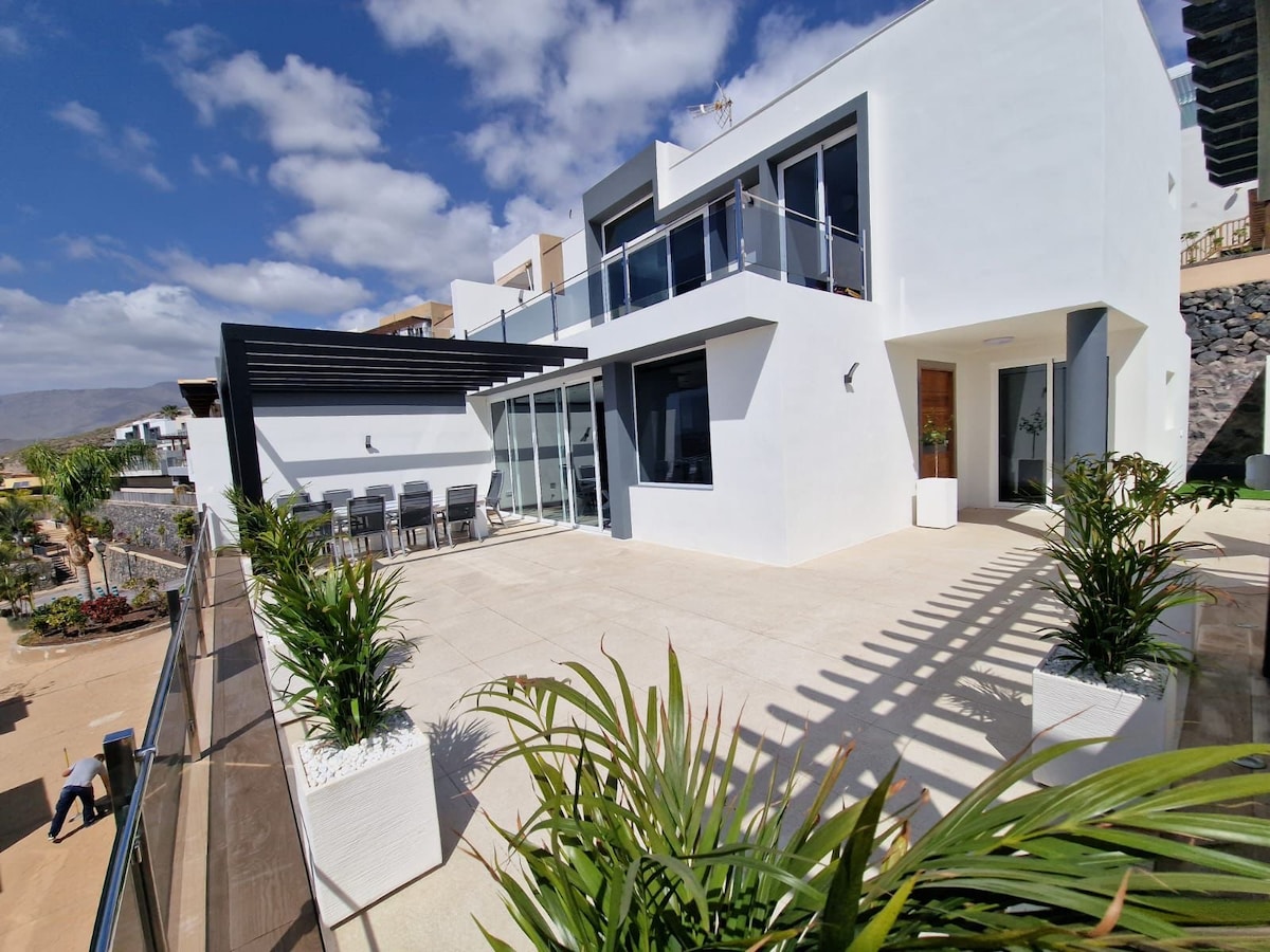 Espectacular villa en prestigiosa zona del sur de Tenerifė - Caldera Del Rey. Está a 200m de parque acuático N1 del mundo nombrado por TripAdvisor años consecutivos - SIAM PARK. A 300m está el mayor centro comercial del sur - SIAM MALL. Impresionantes vistas al centro turístico- Playa de Las Americas, las playas de lo cual están a 1.4 km. Diferentes zonas de descanso, toma del sol, desayunos, cenas en espacios únicos pensados al detalle. Jardín tropical con pérgola que da sombra todo el día y agrade con su frescura y colorido. Piscina infinity que une sus aguas con el horizonte de océano. Las puestas del sol es un espectáculo de colores, imagen que cambia cada día, pero nunca deja indiferente. Amplio salón unido con cocina americana con vistas al mar. Todos dormitorios tienen su salida independiente al jardín mejorando la privacidad de cada uno. Cada rincón de la Villa despierta los mejores sensaciones y acoge para que disfrute al máximo de sus vacaciones.