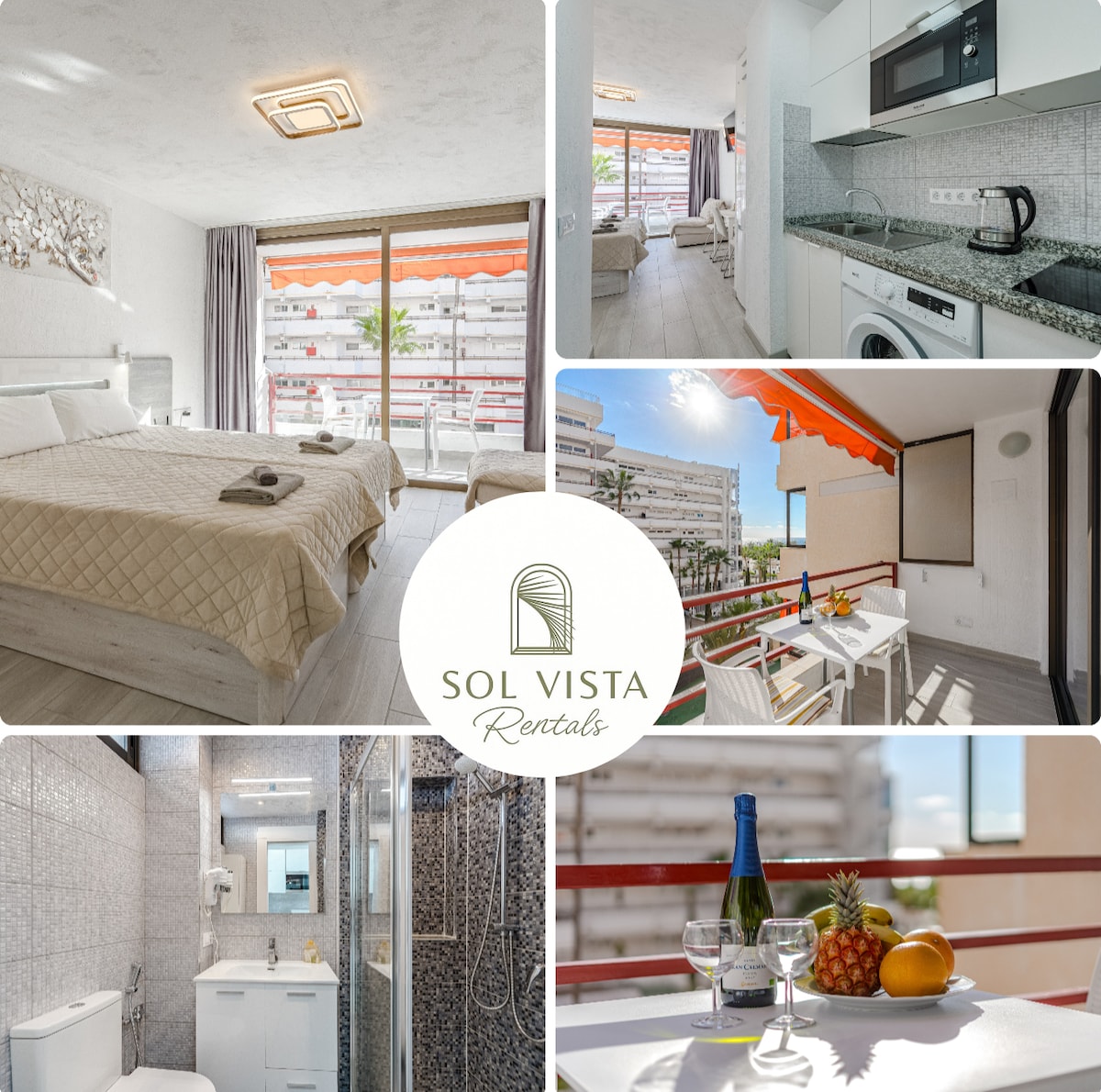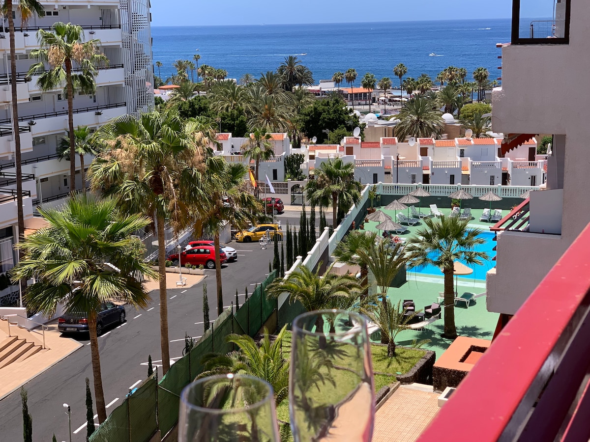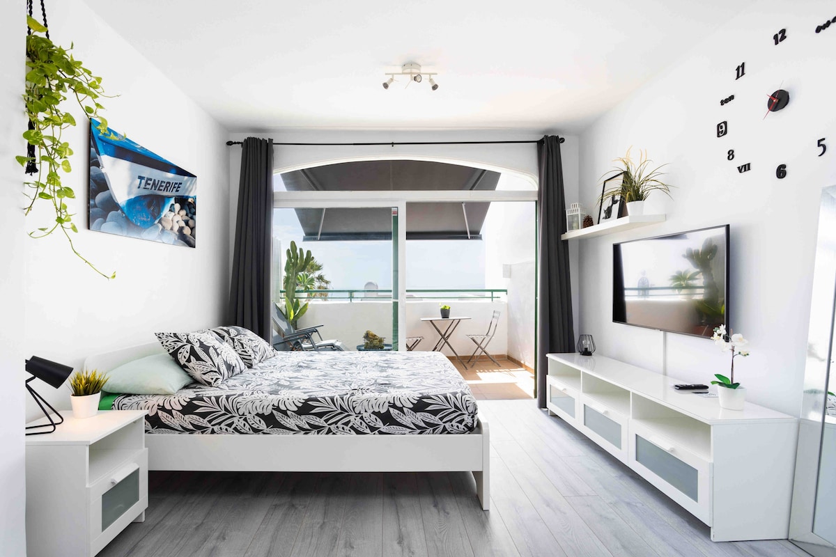 Cozy modern studio in the center of Las Americas overlooking the ocean. 5 minutes from the beach. Near bars, restaurants, park, fruit and vegetable shop Frutería Los Agaves. Across the road is the Siam Park water park and the largest supermarket Siam Mall. The bus station is a 3-minute walk away. Free parking is available on site. Large swimming pool with sun loungers. Wi-Fi average speed is 12-15 Mbps. It can accommodate 2 adults and 1 child.