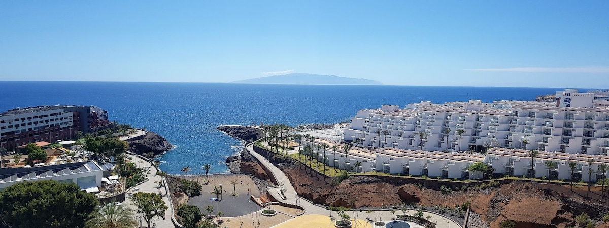 Appartement 1 chambre, cuisine équipée, une salle de douche avec wc, un salon avec canapé lit, TV, balcon avec vue sur mer, la Gomera et la palma imprenable, Wi Fi, ascenseurs. Il y a une piscine dans le complexe, bars restaurants, supermarché au pied du complexe, un hypermarché est à 10 minutes à pieds, un accès direct à la plage de las Galgas. Le Hard rock hotel est de l'autre coté ou vous pourrez assister à des concerts le soir.