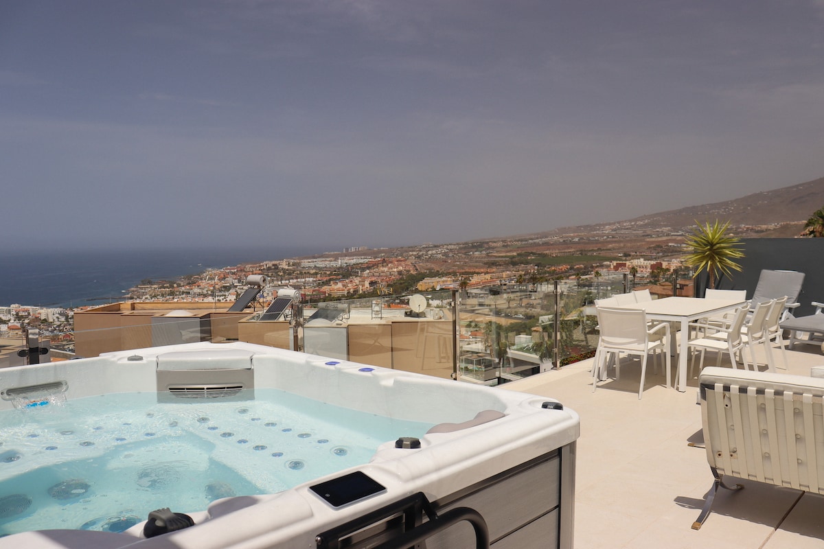 Beautiful modern house! 3 bedrooms, 3 bathrooms, one WC, very big terrace with private heated pool and gardens, magnificent views to the ocean. It is situated just in 7 min walking from the famous Siam Park and a new shopping center Siam Mall. The heating of the swimming pool is 150 euros per a week. We have outdoor camera for security. we´re responsible for ensuring that our listing is safe and compliant with safety regulations.