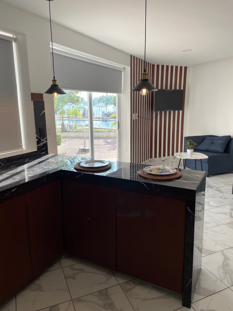 Apartamento de lujo de una habitación con cama matrimonial y colchón inflable matrimonial. Capacidad 4 personas máximo incluyendo niños, (a partir de la 2da persona son $110.00 diarios p/p). Aire acondicionado en recámara y en sala-comedor, cocina equipada, refrigerador, balcón, alberca y playa WIFI privado y en áreas comunes Horario de registro es de 15:00 a 22 hrs, hora de salida es a las 11.00 am, horario flexible cuando se coordina con el propietario Lavadora con la renta de 15 días mínimo