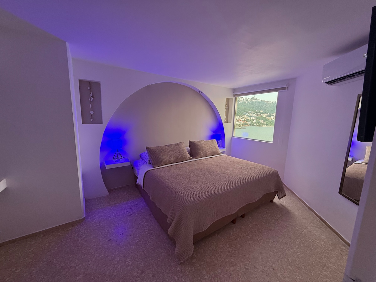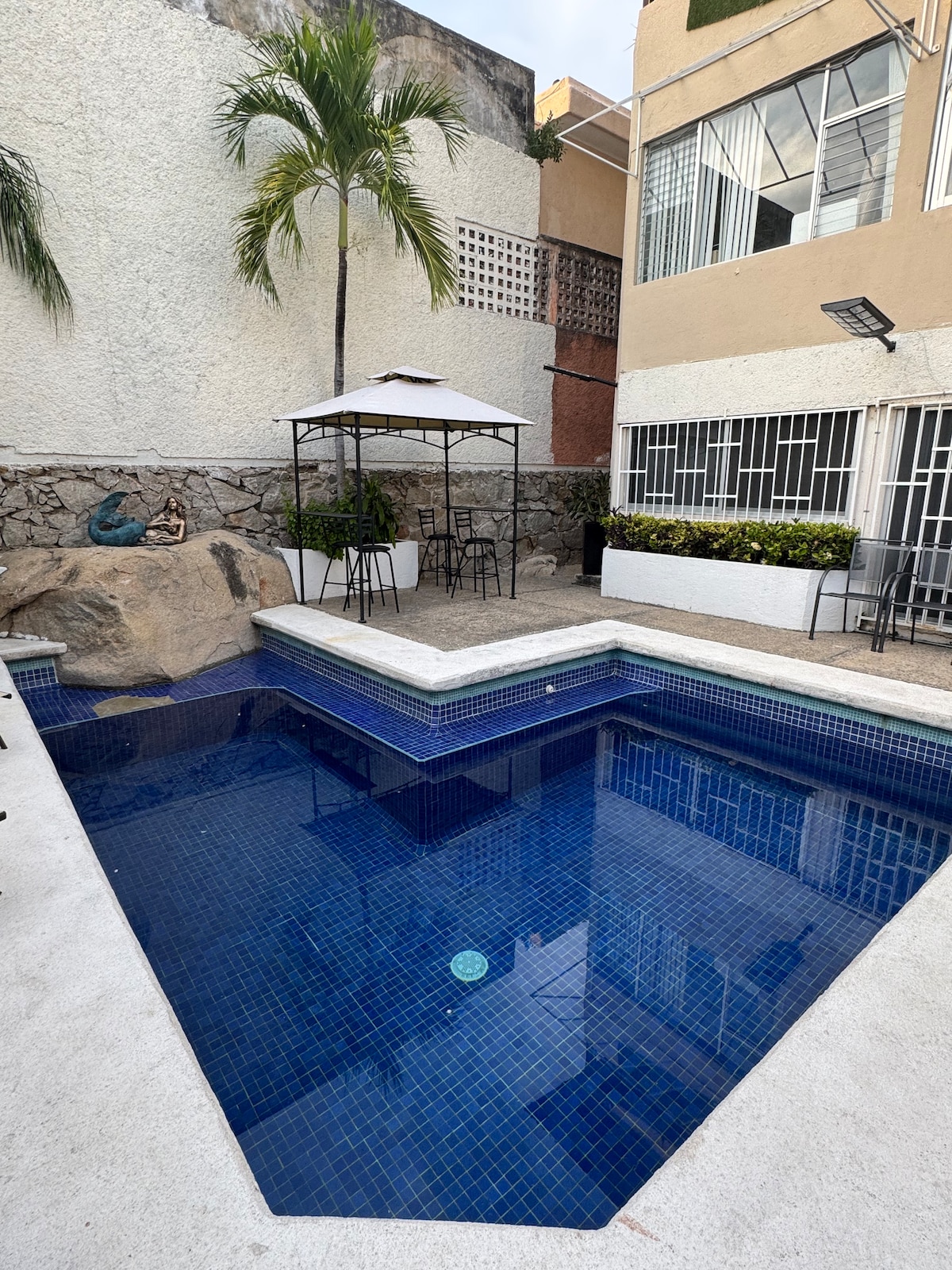Lujoso departamento ideal para enamorados. Localizado en el condominio La Palapa a una cuadra de costera con estacionamiento afuera, alberca y acceso a la playa. Cuenta con una excelente ubicación, a su alrededor podrás encontrar tiendas de autoservicio, restaurantes, bares, balneario, discotecas, farmacias, estacionamientos privados y transporte público cercanos. La mejor ubicación con la mejor vista a la bahía de Acapulco. No lo pienses más y consulta disponibilidad para hacer tu reservación.