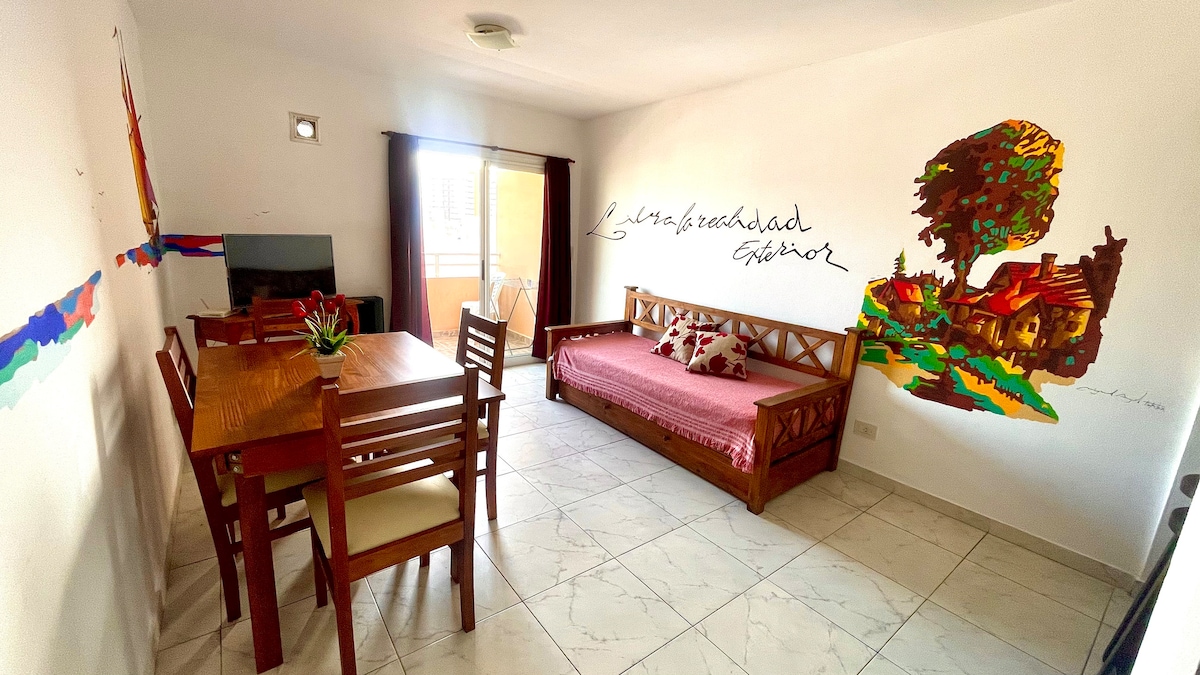 EL DEPTO ESTA PREPARADO PARA 4 PERS, TIENE UN DORMITORIO CON CAMA MATRIMONIAL Y UNA CAMA MARINERA PARA OTRAS 2 PERSONAS. COCINA SEPARADA (GAS NATURAL,AGUA CORRIENTE,VAJILLA COMPLETA Y UTENSILLOS DE COCINA). WI FI 600 MEGAS! SMART TV 32" EN COMEDOR Y EN DORMITORIO (2). VENTILADOR DE TECHO EN LIVING COM Y DE PIE EN DORMITORIO. 4° PISO POR ASCENSOR , HERMOSA VISTA Y LUMINOSIDAD. EL EDIFICIO CUENTA CON ENCARGADA PERMANENTE. ESTA UBICADO SOBRE LA AV PRINC A 100 MTS DEL MAR Y A 50 DE LA PEATONAL.
