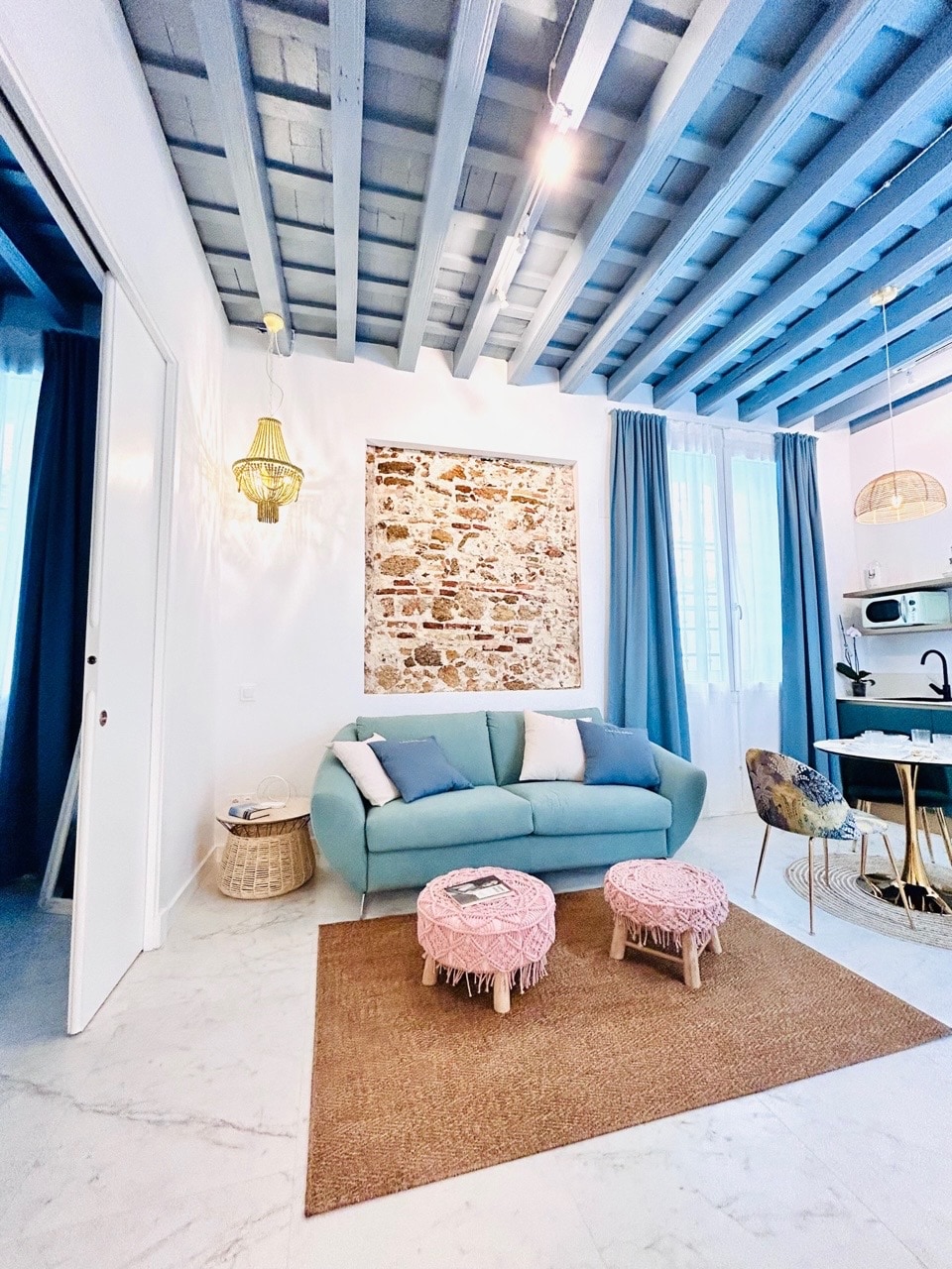 Bright sky with wonderful sights of Central Market, Main Post Office and Cathedral. Great joyful & inspirational location, full of great Tapas Bars and outstanding Restaurants, only 9 min walk to the unique Caleta Beach. Perfect location to enjoy Carnival from its balconies (Coros & Chirigotas" walk right throughout the house street & stop to sing in front the house door). Cádiz + Central Market + Cathedral + Caleta Beach + Tapas + Full-Natural-Light = Tradition, Culture & Joy.