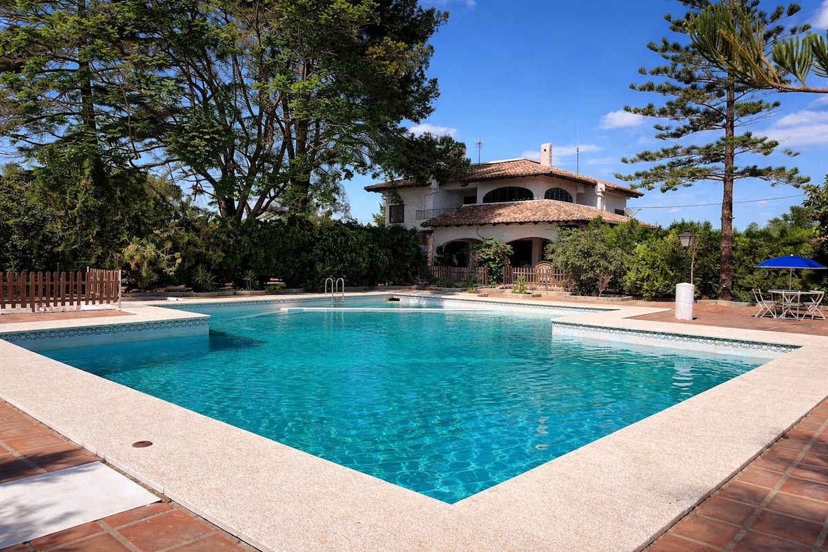 Maravillosa villa de estilo mediterráneo con cuatro dormitorios dobles, amplia piscina privada, jardín y grandes espacios al aire libre. Situada a 2km de la playa (6 min en coche) y a 1km del centro histórico de Jávea. La casa cuenta con 3 cuartos de baño, un porche acristalado, un amplio salón-comedor con sofá cama y 2 cocinas, una de ellas exterior ubicada en otro porche abierto que cuenta con barbacoa y una gran mesa para comidas al aire libre. 📞 Seis-Uno-Nueve-Ocho-Cinco-Tres-Dos-Cero-Uno