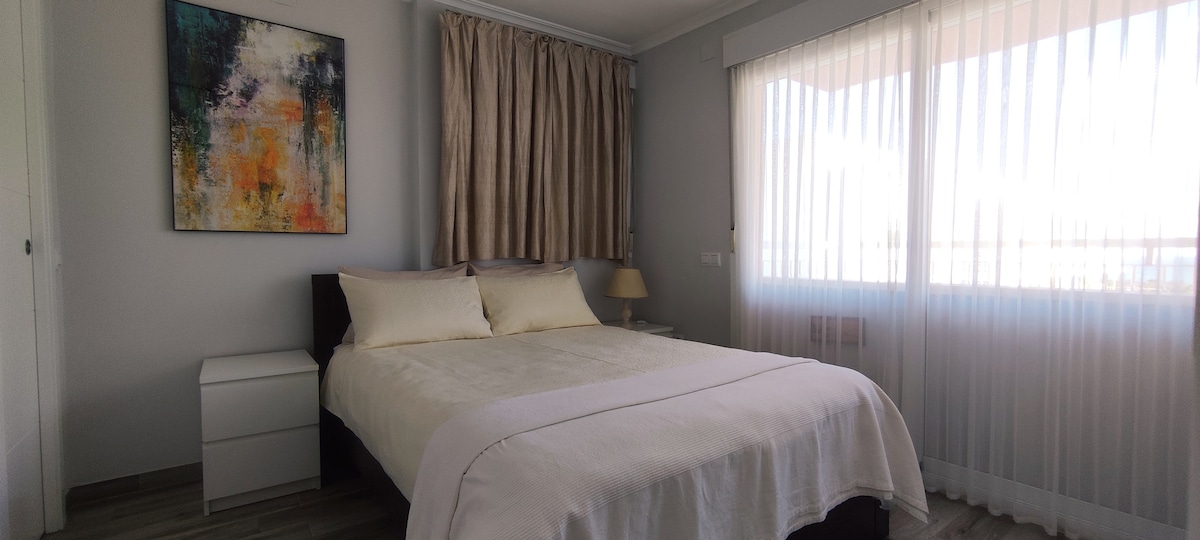 Sunny apartment on the Costa Blanca, facing the sea, ideal for short holidays or full seasons. Playa de los Náufragos and Playa del Acequion 1 min walk. Fully furnished, it has what you need to not worry about anything. We have a crib and high chair. Doors and toilet prepared for the disabled. There is free parking. Pharmacy services, supermarkets, restaurants, bus stop, taxi in the same building 😀 15 minutes walk from the center and the fair! You don't need a car!!