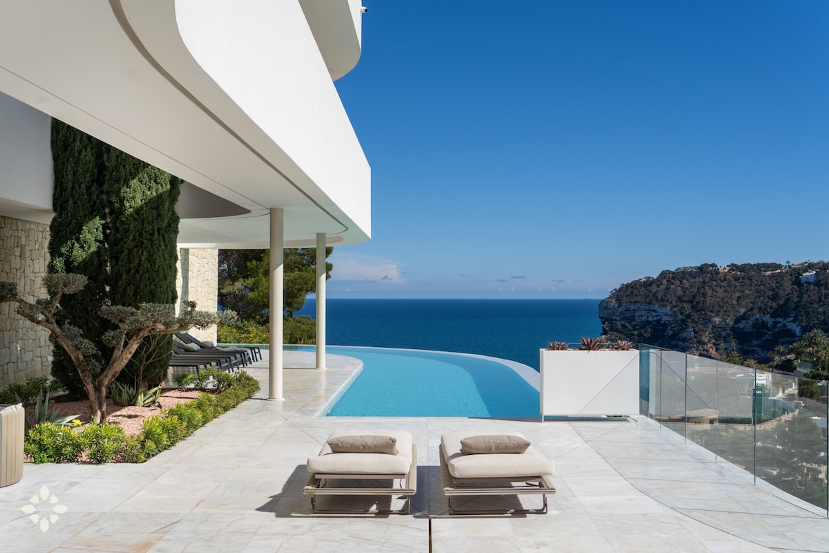 Exklusive Luxusvilla in der begehrtesten Gegend von Jávea mit atemberaubendem Panoramablick auf das Mittelmeer und privatem Pool. Für bis zu 8 Gäste geeignet.