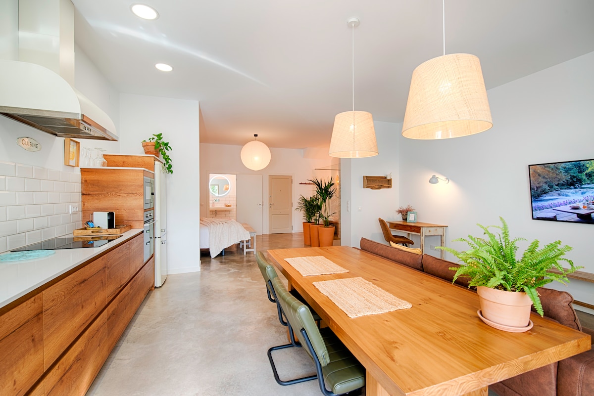 75m2 loft apartment with modern and unique architecture. Carefully designed, decorated with vintage-style furniture and art carefully selected over the years. This combination, along with a spectacular and impressive view over the bay of Cadaqués, makes it absolutely unique. It is located just 1 minute walk from Es Poal beach, about 45m away. PET friendly. We love animals. Please inquire privately about the extra cost per night for your adorable and furry friend.