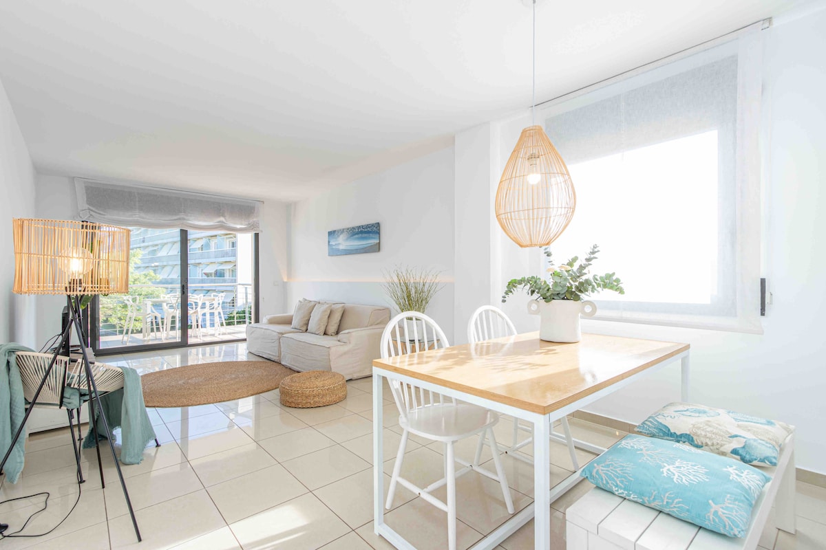 Apartamento con gran terraza frente al mar Mediterráneo, con unas hermosas vistas panorámicas de la costa. Se encuentra en Calella, pueblo marinero y punto de referencia en la comarca del Maresme. Es ideal para parejas y familias con hijos. Está Incluido Wifi 5Ghz.