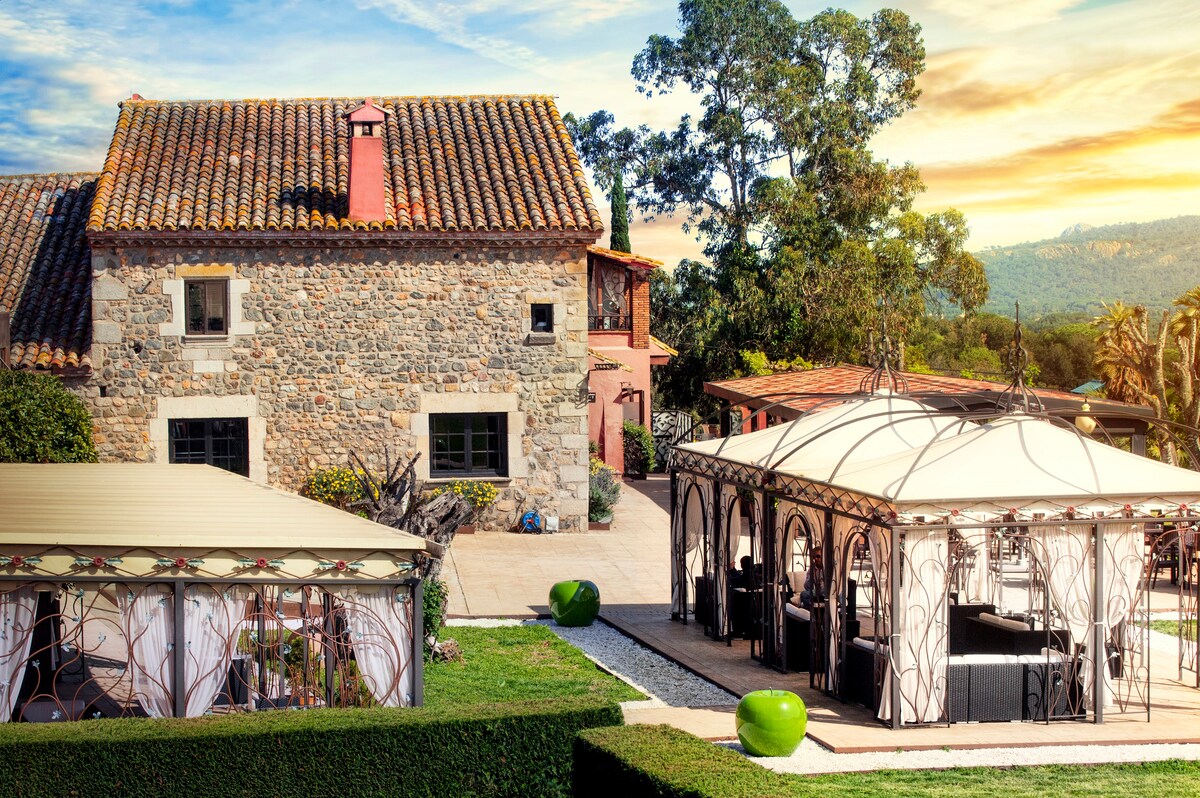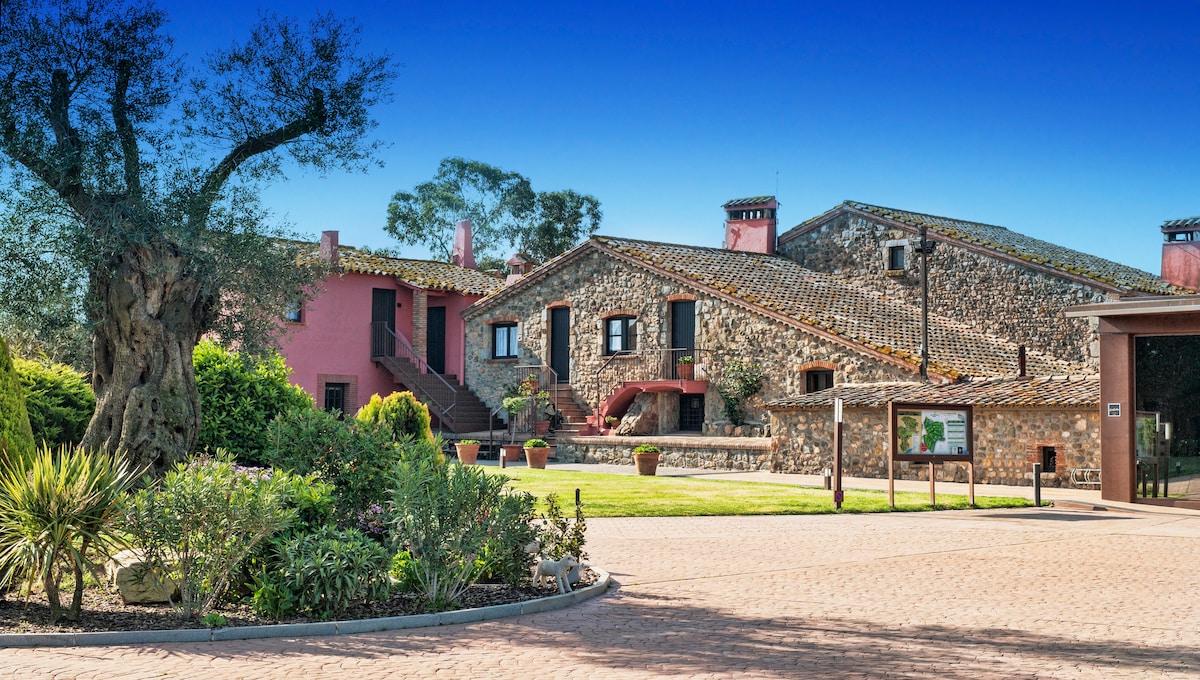 Built in 1792, this family-owned masía (farmhouse) is located in Mont-ras on 10 hectares, and is just 3 km to the beach. This Boutique Hotel has fruit trees, an olive orchard, and a large swimming pool. A walking and bike path are next to the house. The masía is fully renovated with all the modern conveniences but maintains its rustic charm. Each unique bedroom has its own bathroom, TV, and wifi. Breakfast is included (8:00-10:00). Adults only.