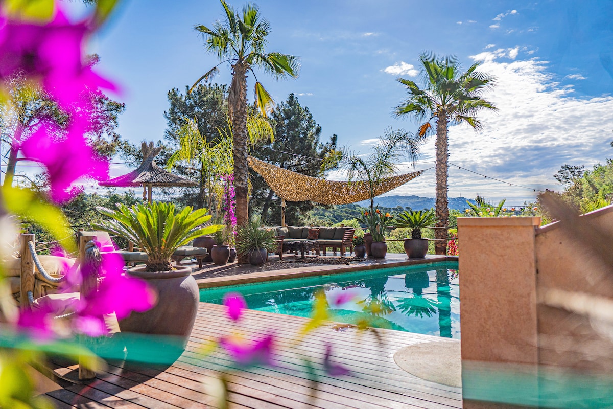 Our beautiful studio is ideal for couples looking for a relaxing time in a peaceful environment with amazing views. Whether playing table tennis, cooking up a bbq, cooling off in the pool or just snoozing in the hammock is your thing, you have it all here! Notre studio tout rénové est parfait pour un couple en quête de détente dans un environnement magnifique avec une vue imprenable sur la mer. En 10min à pied vous serez sur la superbe plage, le port ou bien en centre ville.