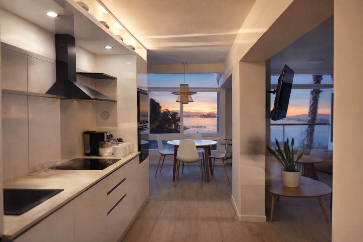 Vue panoramique sur la mer. A deux pas de la plus belle Plage de Mojacar. terrasse et jardin privé de 120m2 et ombragé avec son ambiance Bohème. ainsi qu’un grand parking privé et sécurisé vous pourrez laisser votre voiture au parking et aller à la plage à pied … Un appartement neuf décoré par Jeronimo de Mojacar . L' endroit idéal pour des vacances de rêve. Très calme, bien qu'ayant de nombreux commerces a proximités.