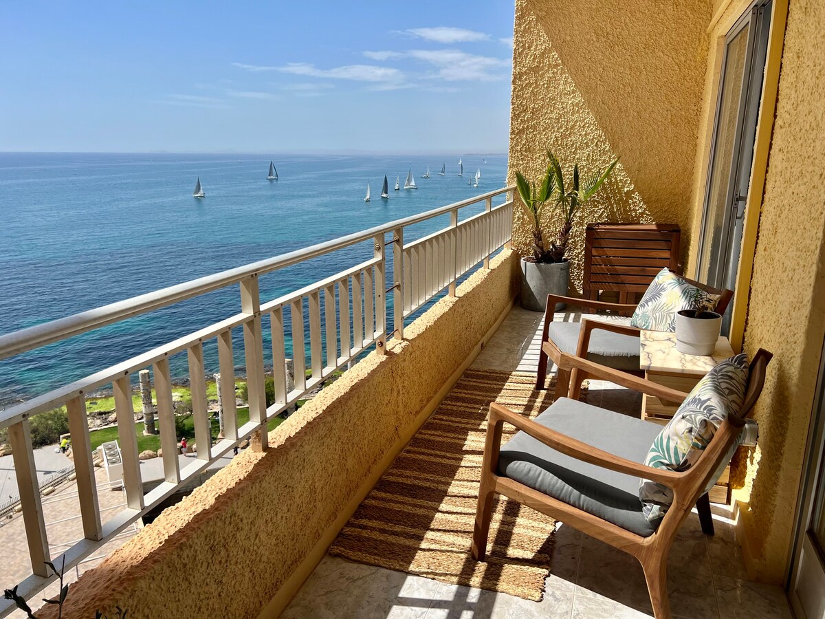 Welcome to this stunning 2-bedroom, 2-bathroom apartment. Designed for comfort and style, this newly built home offers uninterrupted sea views from every corner, whether you're relaxing in bed, cooking in the kitchen, or enjoying a drink on the terrace. -High-quality finishes & modern design -Spacious open-plan living area with floor-to-ceiling windows - Private balcony with direct sea views -Secure building with elevator and beach access just steps away. -Parking