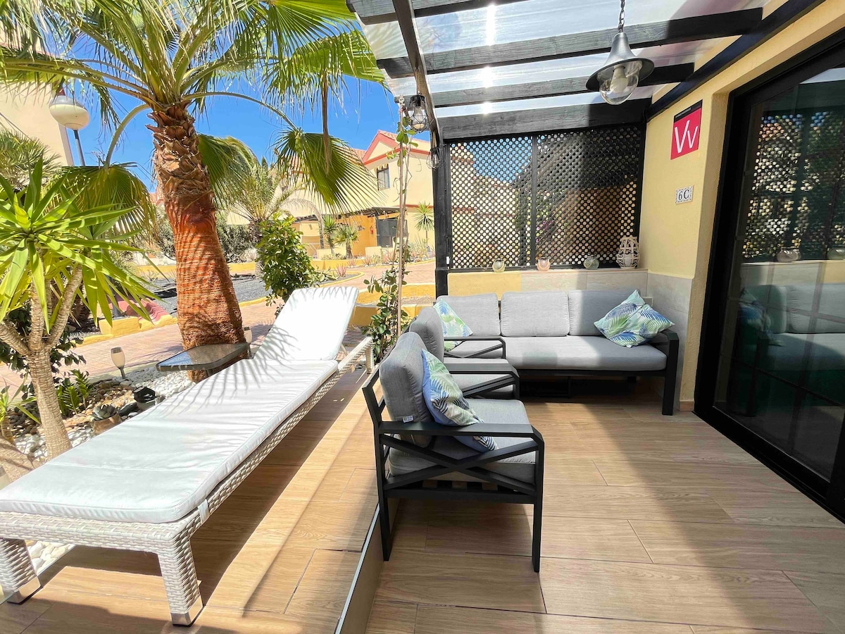 Fully refurbished bungalow boasting a large private roof terrace with sea views of Lobos and Lanzarote. Large quiet communal beachfront pool and paddling pool. (Just fully renovated). Situated within a small gated beachfront complex next to the popular surf spot 'Punta Elena'. We bought this property end september 2021 while it had 114 reviews with an average of 4,87 and hope to even improve this to make your stay a “memorable experience”