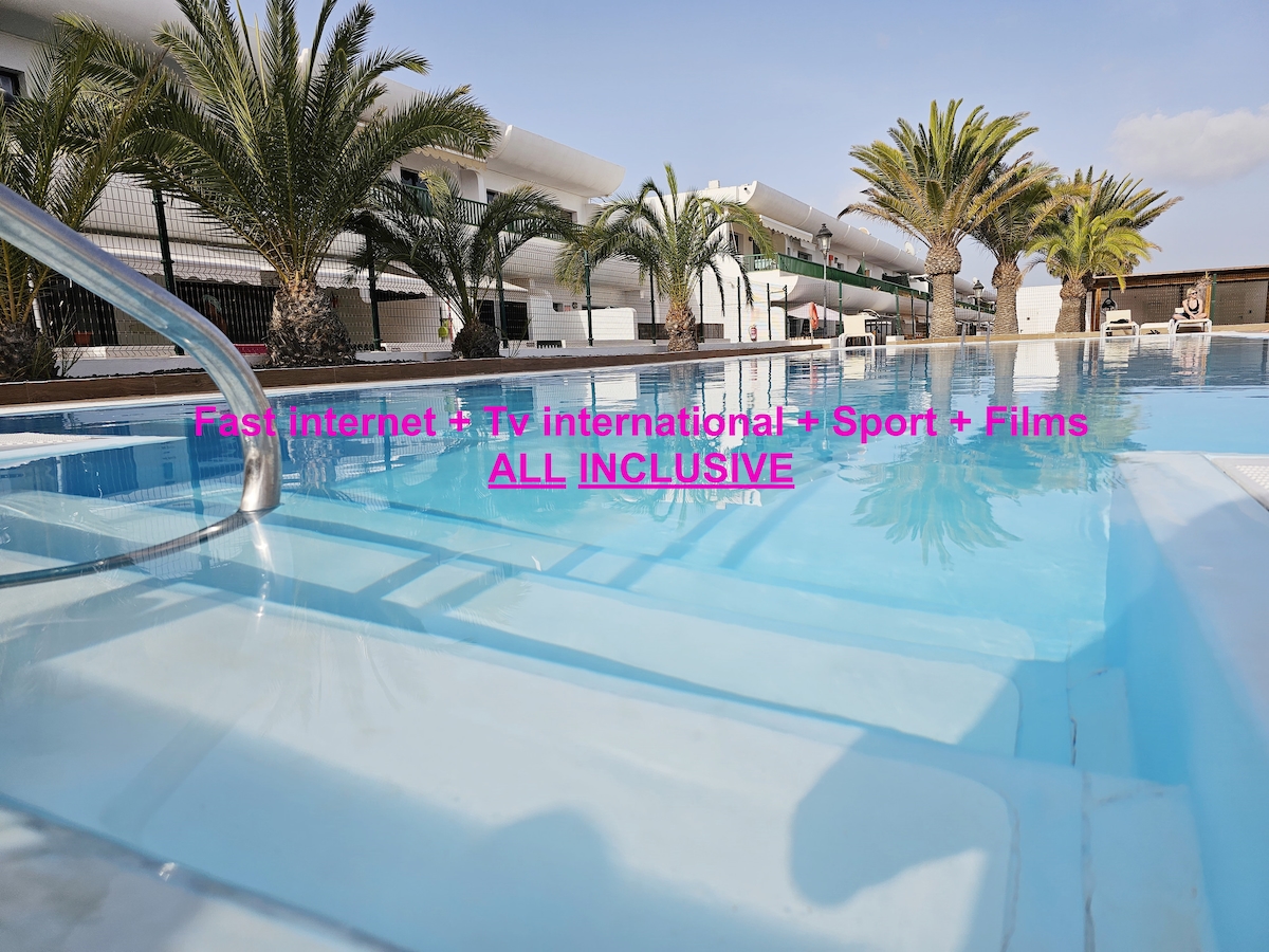 The apartment for exclusive use is located in Corralejo within a residential complex with a swimming pool and solarium. It borders the “Parque Natural de Corralejo” and is about 400 m from the famous “Grandes Playas” and the “Dunas de Corralejo”. The accommodation consists of a bedroom, living room with kitchenette, bathroom and a large terrace. Super Fast WI-FI Internet Fiber connection and linen included in the rental price. Free parking available.