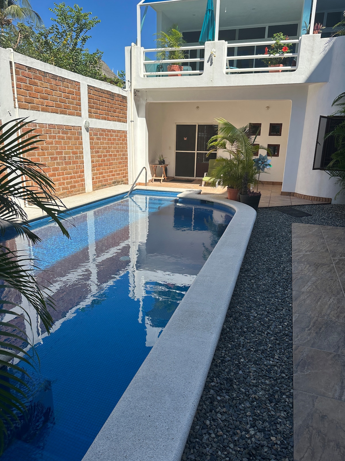 Villa Mar is a beachfront retreat surrounded by lush gardens. It features a private pool, access to a shared pool, and a relaxing area to enjoy the peace and quiet. Just steps from the beach and two blocks from downtown, the villa also offers a large parking area and recreational Wi-Fi, perfect for a comfortable and enjoyable stay.