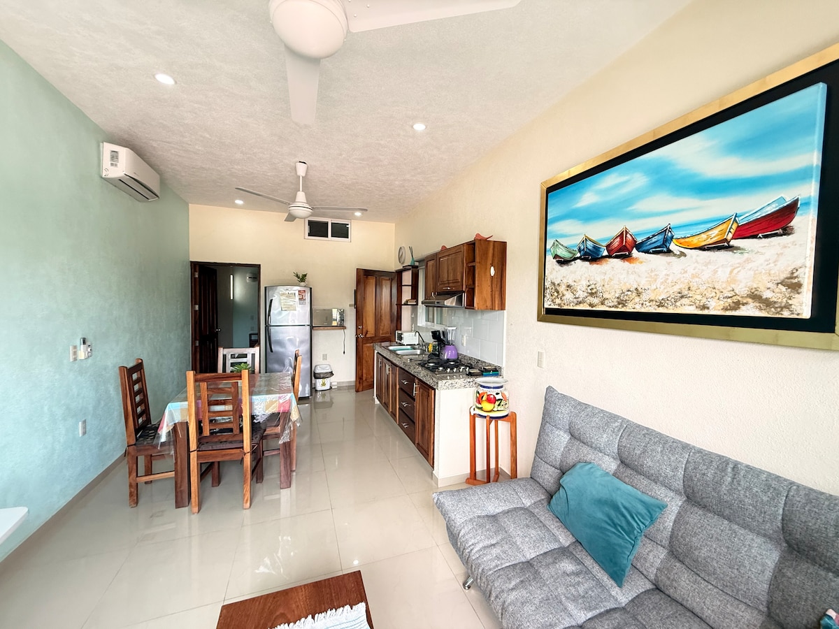 Petite but fully equipped studio apartment. Only half a block from beach. Second floor with private balcony and partial ocean view. Workstation and high speed internet. Unit is part of but independent from our boutique hotel. Our property provides a lifestyle where refinement meets comfort, where every detail reflects a sophisticated living space. Very unique for the area. Available for min 2 night stay or long term. Housekeeping services included in either option. 20 sq mts.