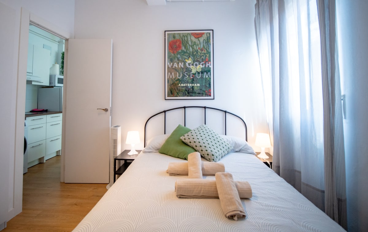 舒适单间公寓:独立入口、1张床、卫生间和厨房