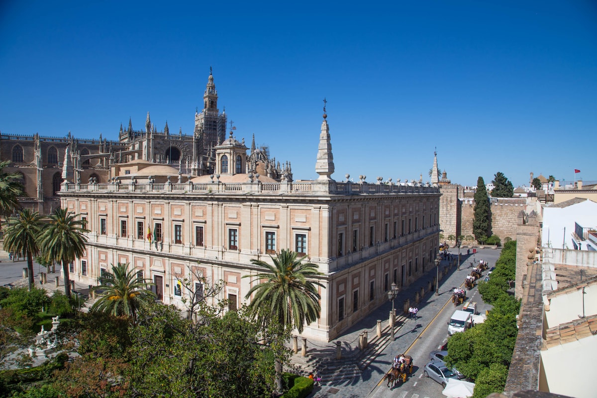 Coqueto y muy tranquilo apartamento localizado en Casa-Palacio, con todas las comodidades necesarias para una estancia perfecta. Recientemente redecorado. Ubicado en pleno centro y casco histórico, a menos de 50 m de la Catedral y Giralda, Archivo de Indias, y Reales Alcázares, y a 200 m de la Torre del Oro, a 20 metros de La Casa de la Moneda. Recién pintado y decorado con muebles confortables en tonos neutros ¡Cocina recién reformada con lavavajillas! Amplio Salón. Sofá-cama totalmente nuevo.