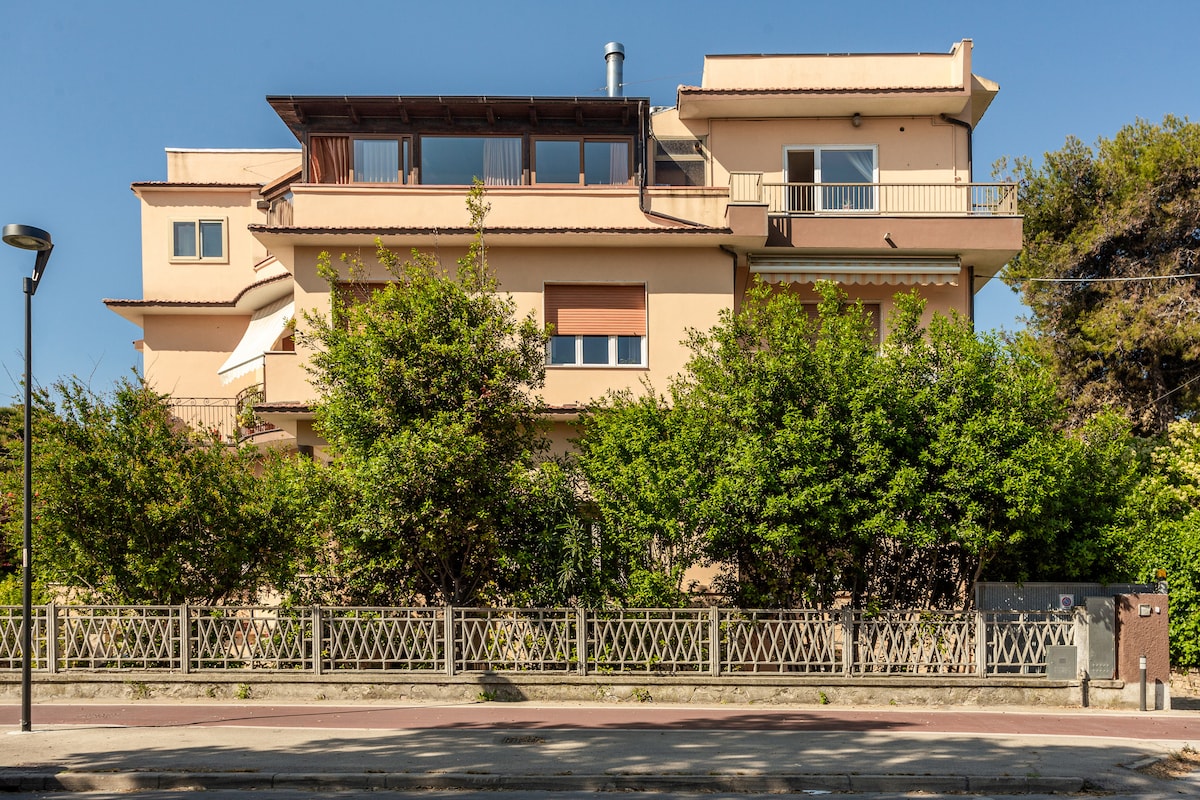 Beach front apartment with private entrance and free parking inside. The place is located within a cosy family building, but it has is own independent access. Free pickup and drop off from and to airport/station, seaview from the terrace, a Jacuzzi, Wi-Fi and complimentary bikes will make the stay convenient and unforgettable. Exclusive location, between the beach and the beautiful Pineta Dannunziana Park, in one of the most renowned areas in Pescara. CIR 068028CVP0319