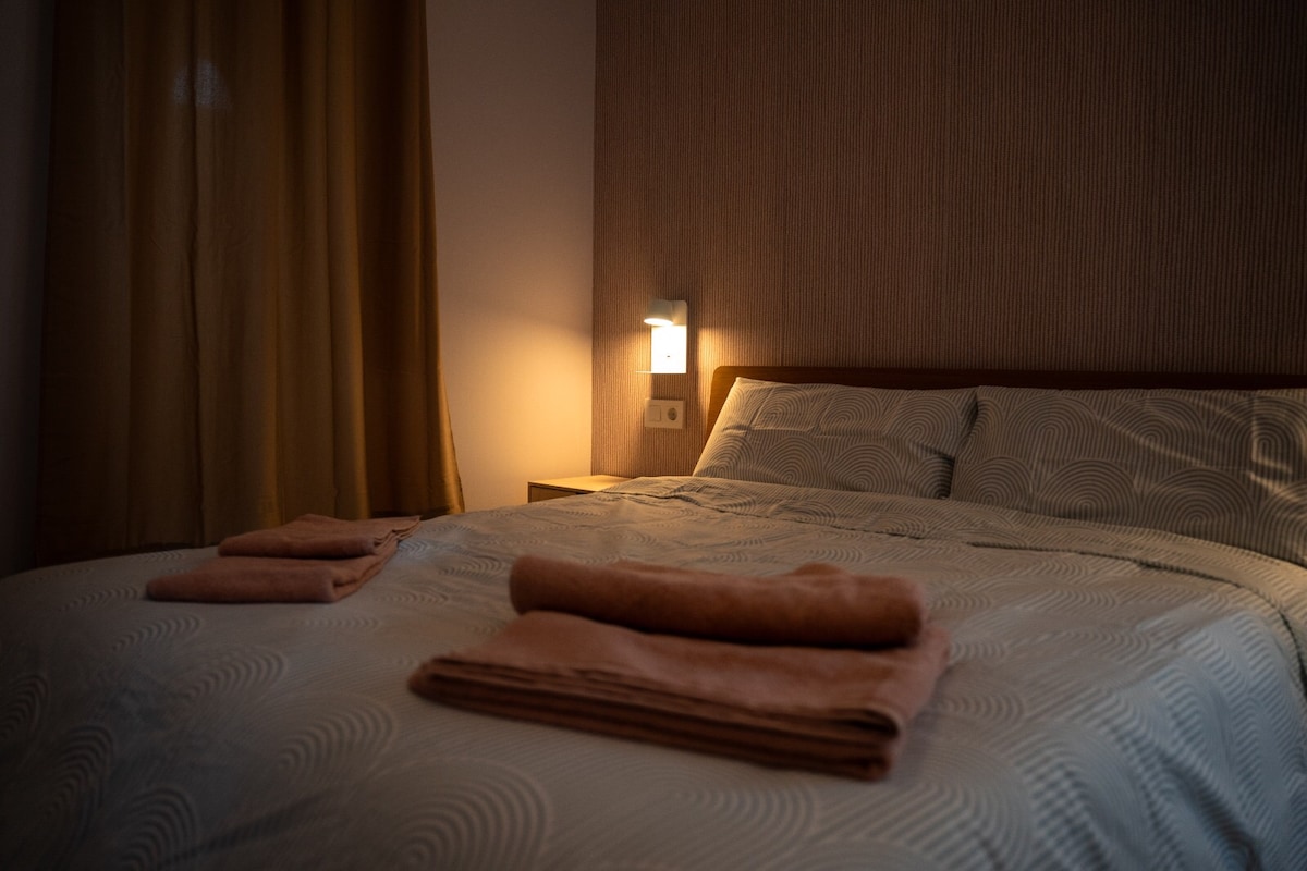 Disfruta de habitaciones recién renovadas, diseño contemporáneo, baño privado, WiFi de alta velocidad y total independencia. La ubicación es insuperable: a pocos minutos de ambas playas y cerca del centro. El check-in es autónomo 24h por código numérico, sin recepción física ni esperas. Reserva y vive tu estancia con libertad y estilo.