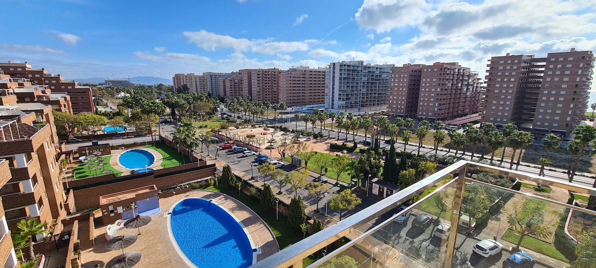 Wonderful location by the sea. Self-check-in and free, covered parking space. "Las Terrazas" Urb. in Magic World, Free facilities such as gym, sauna, paddle tennis courts, garage and bar (high season). Two swimming pools for adults and two small ones for babies. Very well located, a step away from Mercadona and the parks, but without commercial premises on the ground floor, to guarantee rest. With wifi for teleworking, air conditioning and heating. Check-in according to RD 933/2021 requirements