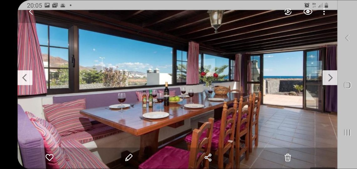 Dentro de las Villas Altos de Lanzarote, esta vivienda consta de una edificación principal con amplio salón comedor, cocina, 2 dormitorios con cama doble y 2 dormitorios con camas individuales. Además, hay 3 baños: 2 con ducha y 1 con bañera. Tiene salida directa a una amplia terraza exterior con piscina privada, barbacoa y mobiliario exterior.