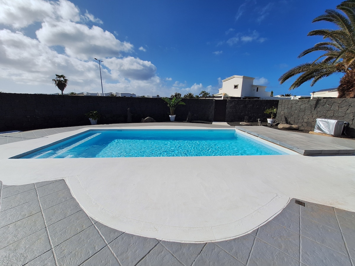 Our house is close to the sea, beaches and the bus stop, where you can catch the bus that takes you to Playa Blanca in 5 minutes. It is the perfect place for relaxing holidays for couples or families with kids, and a wonderful temperature also during winter. The outdoor patio is well protected against the wind. The house is fully equipped with TV, WiFi, barbecue, heated swimming pool, and furnished as comfortable as possible, as this is where we spend our holidays, when we come to Lanzarote.