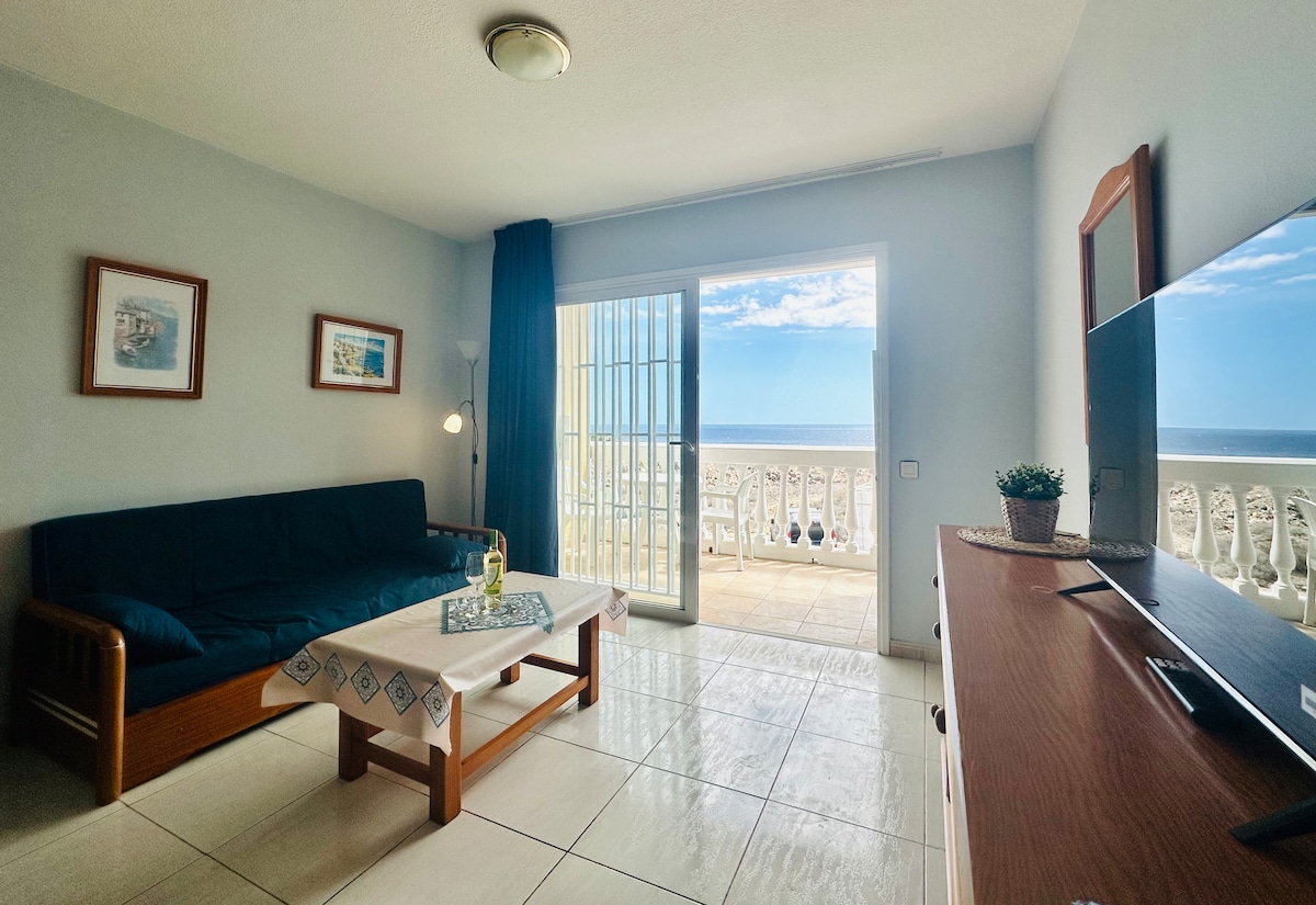 Indulge in luxurious oceanfront living in this contemporary 125m2, 2-bedroom first flor apartment, just 30 meters from the sea. Situated on the first floor of a quiet, friendly neighborhood, this residence offers tranquility and intimacy. Enjoy breathtaking ocean views, accompanied by the delightful sounds of parrots. Perfectly positioned between the dynamic towns of El Medano and Las Americas, you'll benefit from both peaceful surroundings and convenient access to local amenities