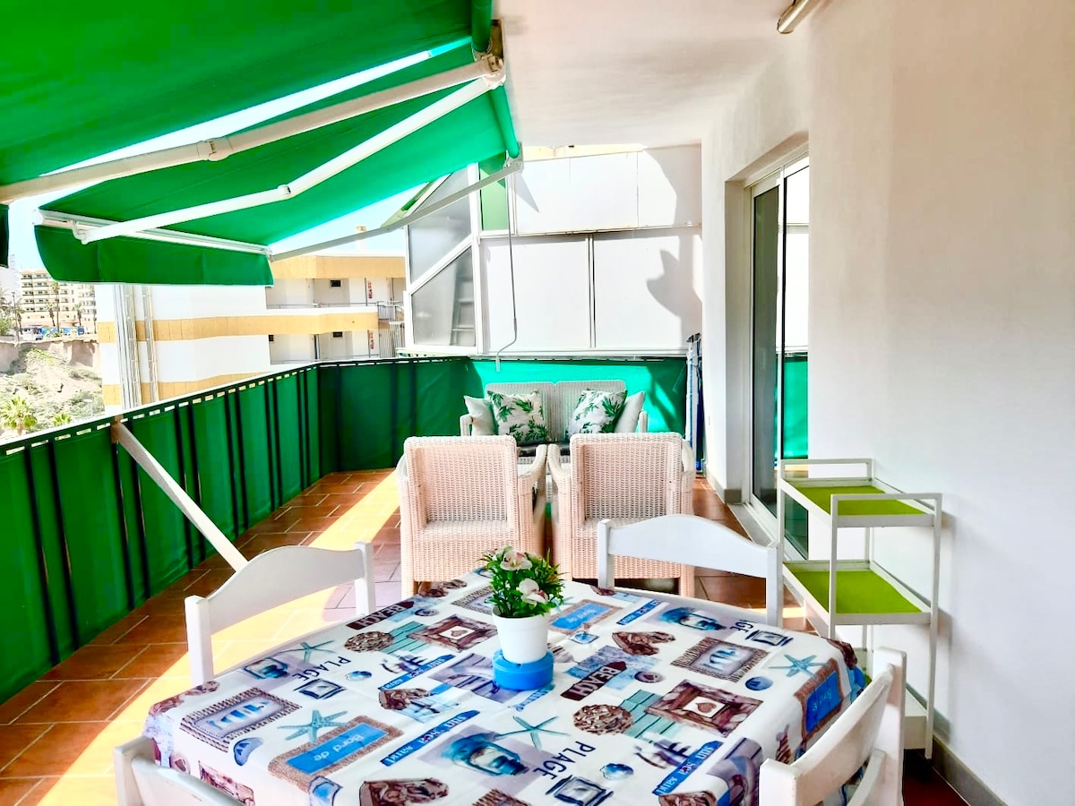 Cozy apartment of 35m² with a terrace. Bedroom-large bed for 2 people. Living room - comfortable pull-out sofa for 2 people. The apartment is fully furnished: kitchen, stovetop, electric kettle, convection oven, washing machine, TV, and internet optic cable 1Gb. Workspace corner. Terrace of 9m², south-facing. Located in the beautiful and quiet Tagoro Park. Includes a large swimming pool - approximately 20m. Ideal for 2 adults and 1-2 children. Rocky and sandy beaches are 7-minute walk away.