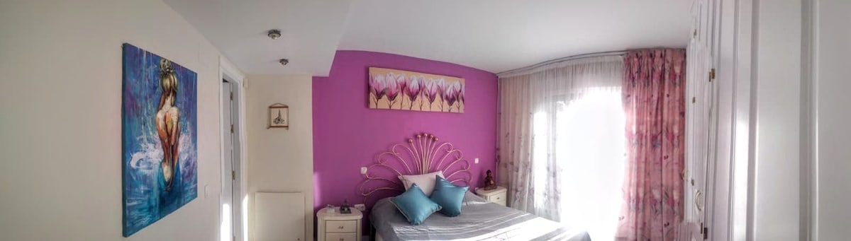 El alojamiento esta situado a 30 metros del centro,esta en una casa grande donde cada habitacion tiene todo lo necesario para sus vacaciones no teneis que compartir nada con huespedes,la vivienda esta en segunda planta sin ascensor..pero la vista es al pueblo desde la terraza de la vivienda es impresionante...la entrada es independiente no teneis que entrar en casa del anfitrion es como un apartamento ..el pueblo de Mijas esta a 8km de fuengirola,playa, pero centrico 50 metros esta la plaza de la constitucion, tiendas,restaurantes,mercado municipal supermercado et . dispone de cocina equipada completa y baño privado es una habitacion privada con todos los lujos de un apartamento no le falta de nada y por supuesto el encanto de la habitacion super romantica de luces led de cambio de iluminacion.se ira del mijas con una sonrisa en sus labios para siempre.se lo aseguro
