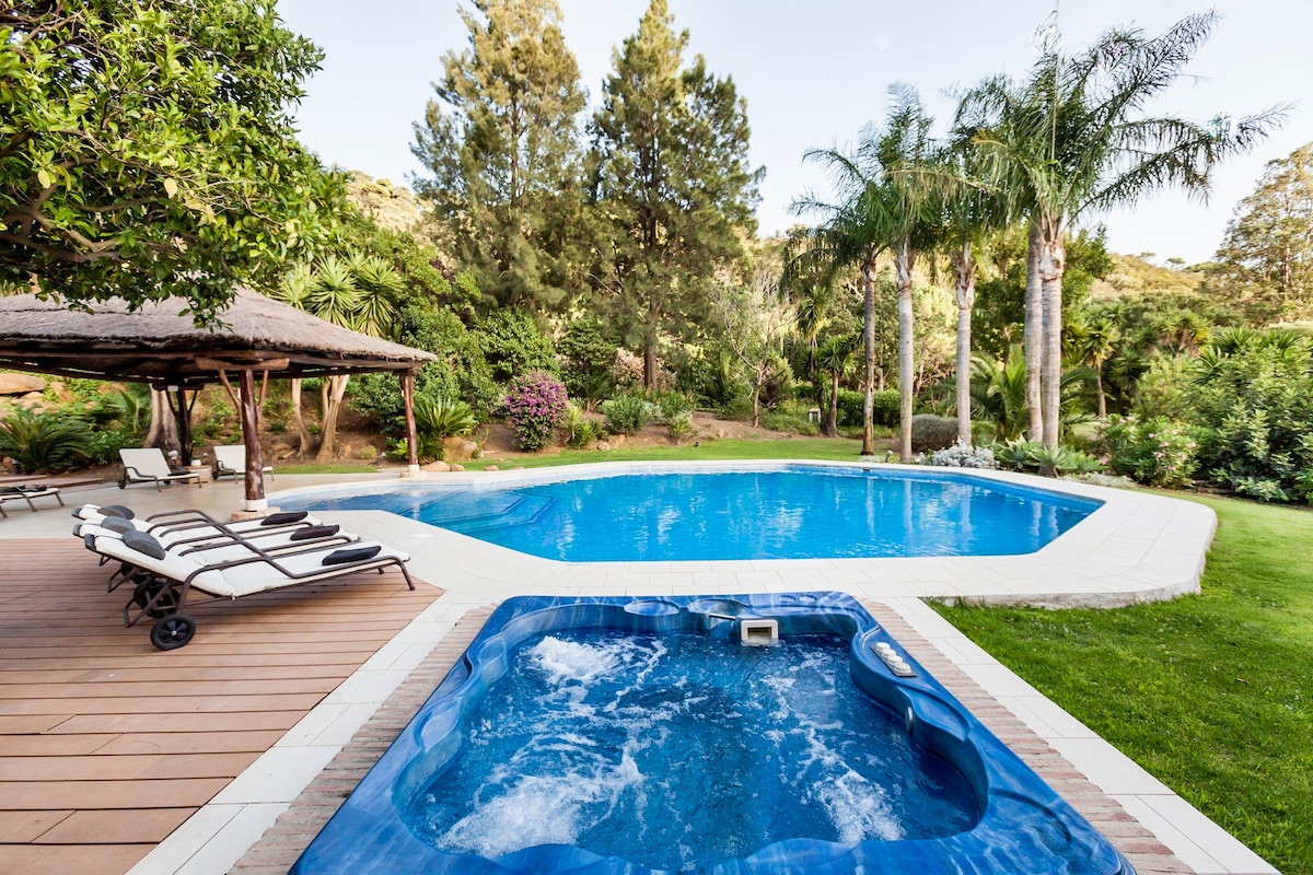 A peaceful country get-away with luxury amenities. Nestled in the Andalusian mountains and only 20 min to the sea & coastal towns. Child friendly. The jacuzzi & indoor pool are heated year round and for your use. They are in private areas of the property. There is an outdoor kitchen with gas BBQ, bluetooth speaker, and dining space near the pool. The casa has a covered terrace with views of the avocado orchard. The gardens are lush with tropical plants, colorful blooms & sprawling lawns.