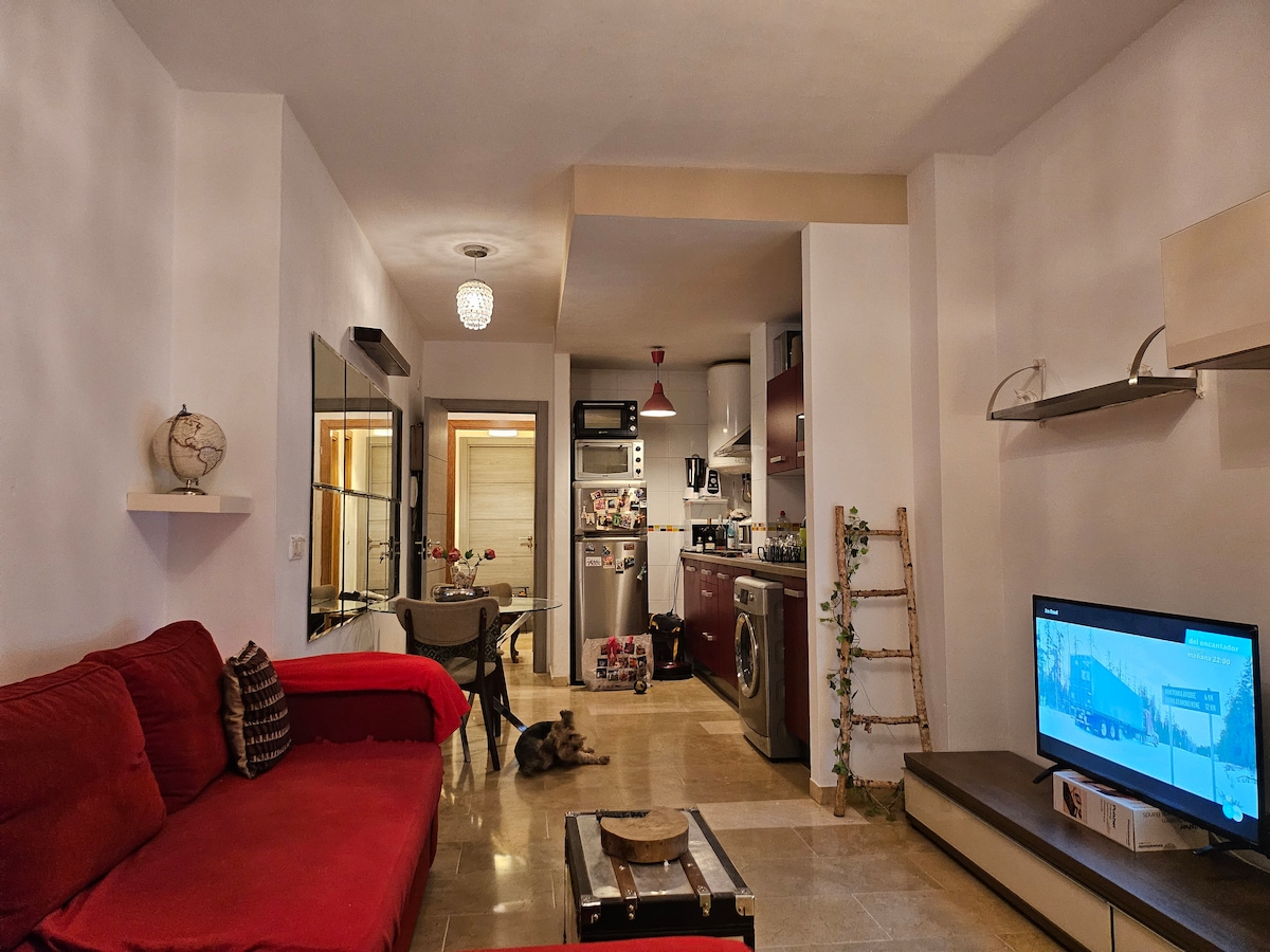It's a bright apartment, like a loft. Everything open except his own bathroom. Has an equipped kitchen with all the necessary tools. You will enjoy it because it's homely. It has a lot of services and interesting places near the apartment. Like everything it's only 5 minutes (maximum) far from the apartment. Beach, restaurants, supermarket, town center. My family and I are leaving really close to the apartment, so will be a pleasure to help you everytime you need it. Welcome to "your home"!