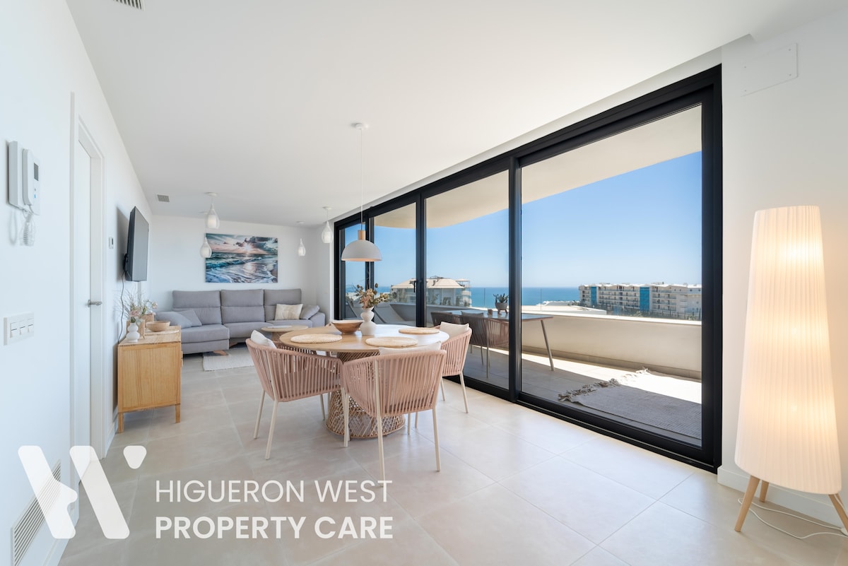 This new and unique place has a style all its own. Live unforgettable moments in this beautiful and modern apartment perfectly located in the exclusive area of Fuengirola, el Higuerón! 2 spacious bedrooms, 2 modern bathrooms, bright living room with floor-to-ceiling glass doors that provide direct access to the big 27 m2 terrace with a quality lounge area, fully equipped and open-plan kitchen. Built in 2025. Sea view, outdoor gym and pool, BBQ area, picnic and play area, coworking!